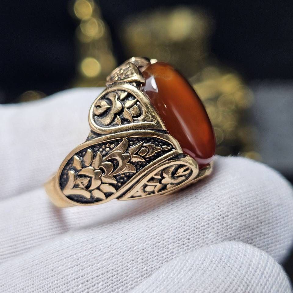 انگشتر طلا روس با سنگ عقیق سرخ معدنی خراسانی حکاکی دست کد 35169