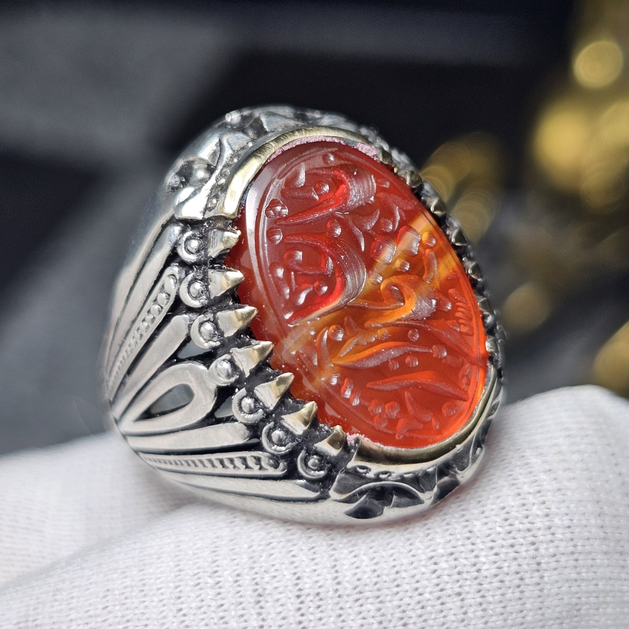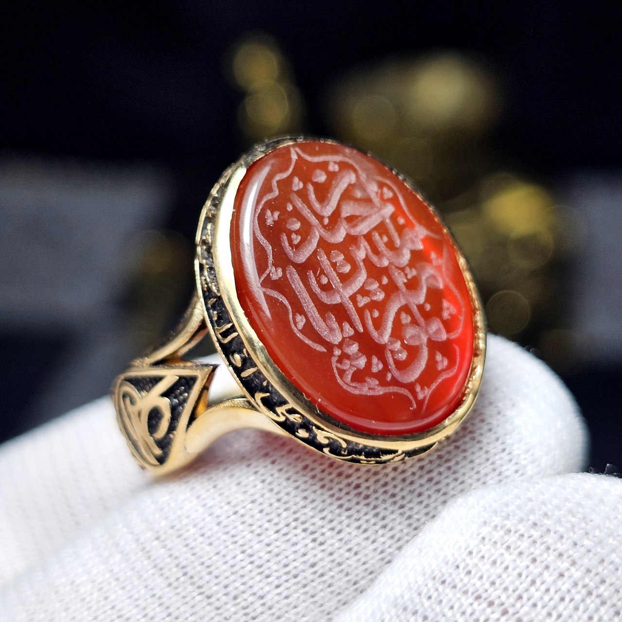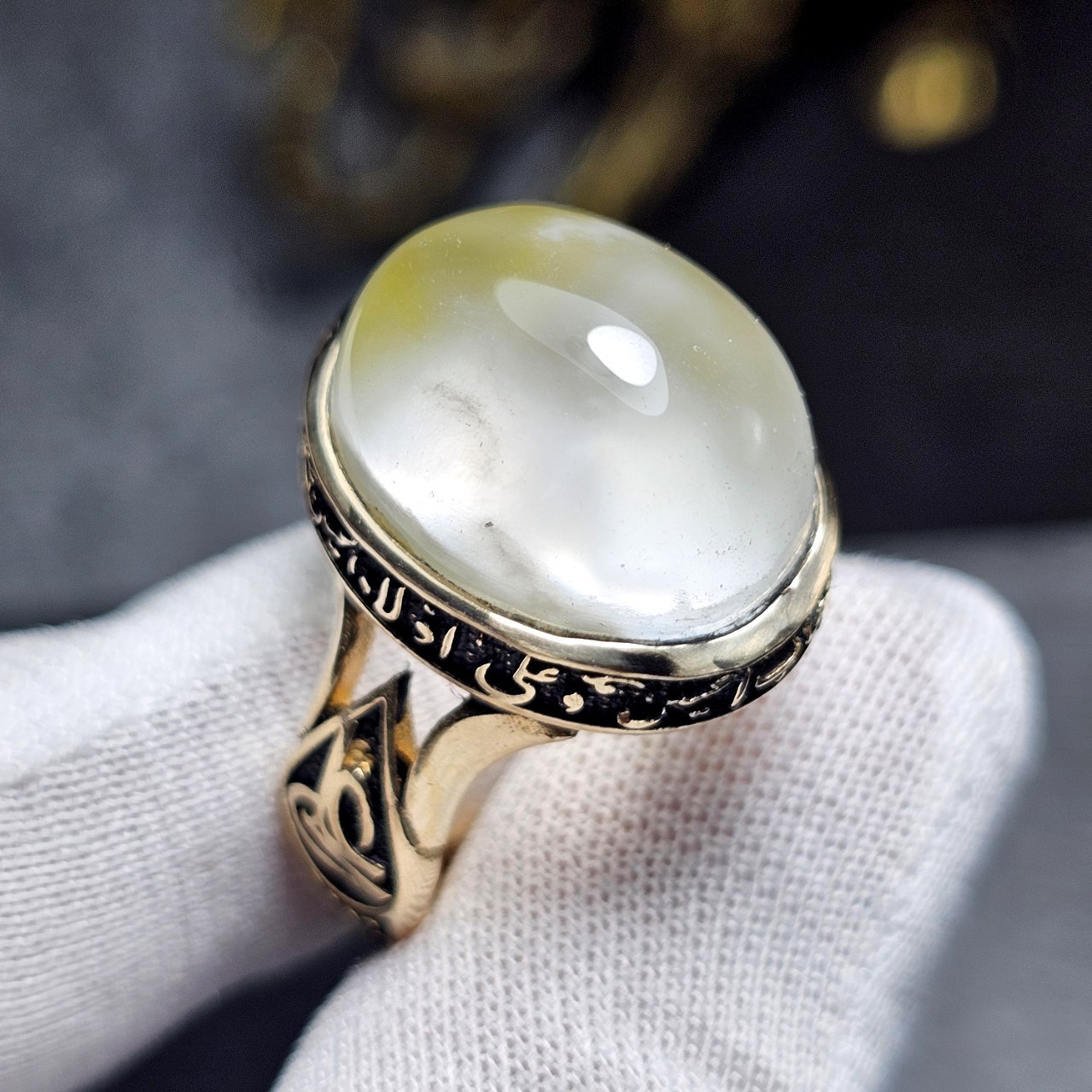 انگشتر طلا روس با سنگ عقیق معدنی با خط دست کد 34767