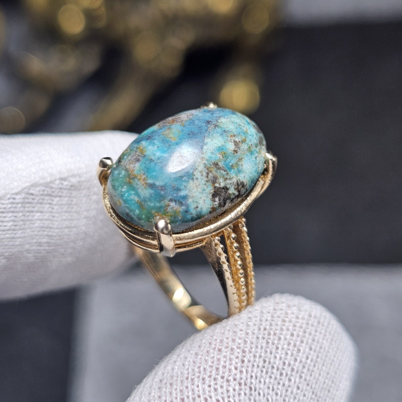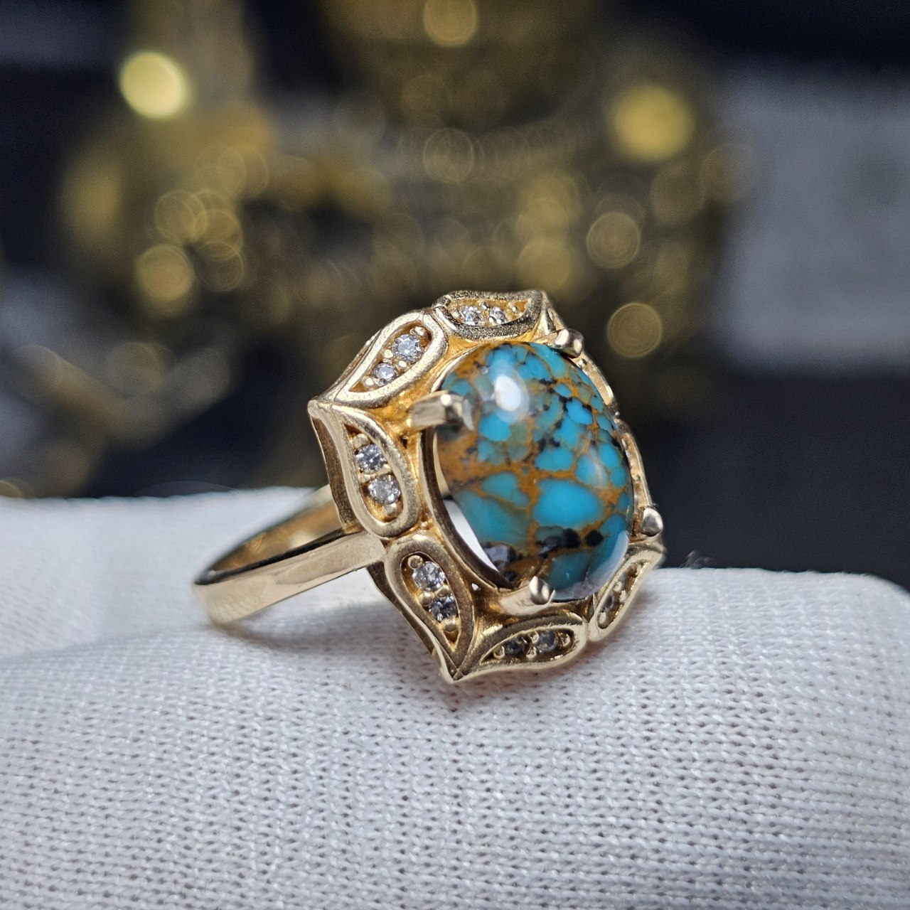 انگشتر طلا روس با سنگ فیروزه معدنی کد 35190