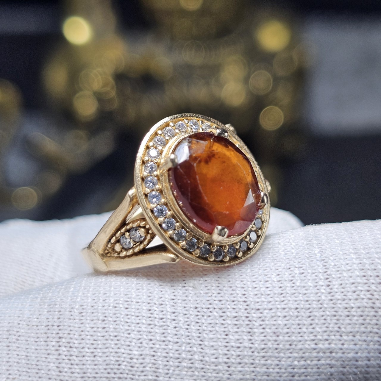 انگشتر طلا روس با سنگ گارنت معدنی کد 36137