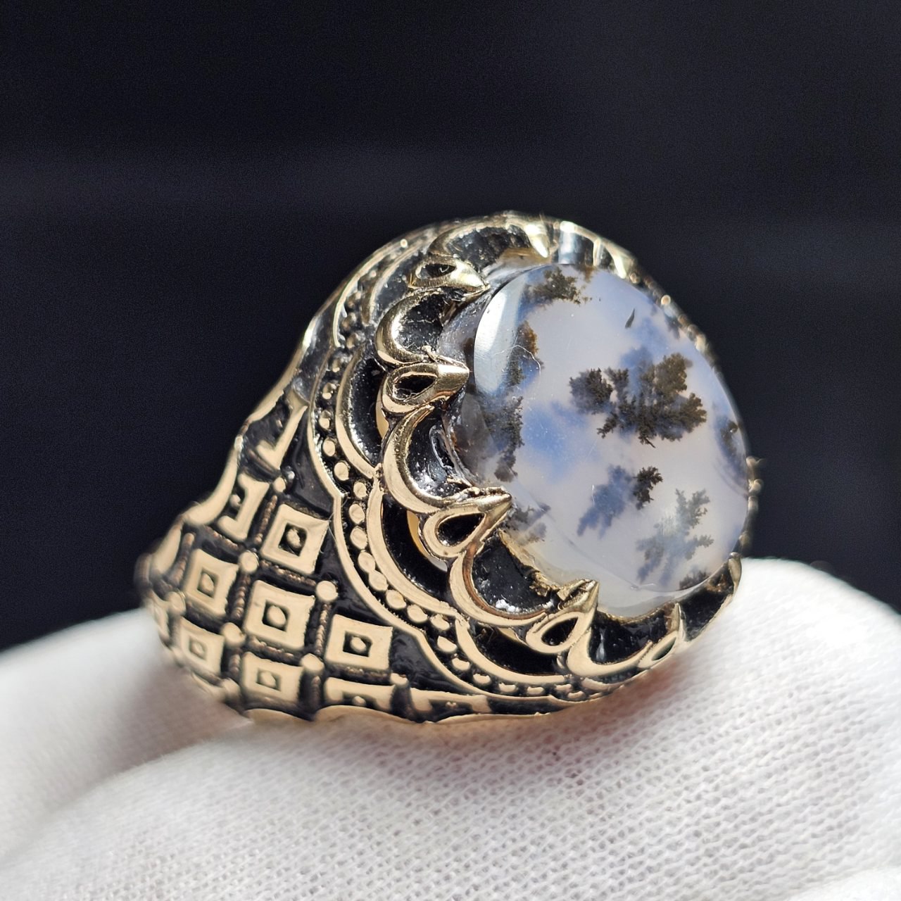 ناموجودانگشتر طلا روس با سنگ عقیق شجر معدنی خراسان کد 37830