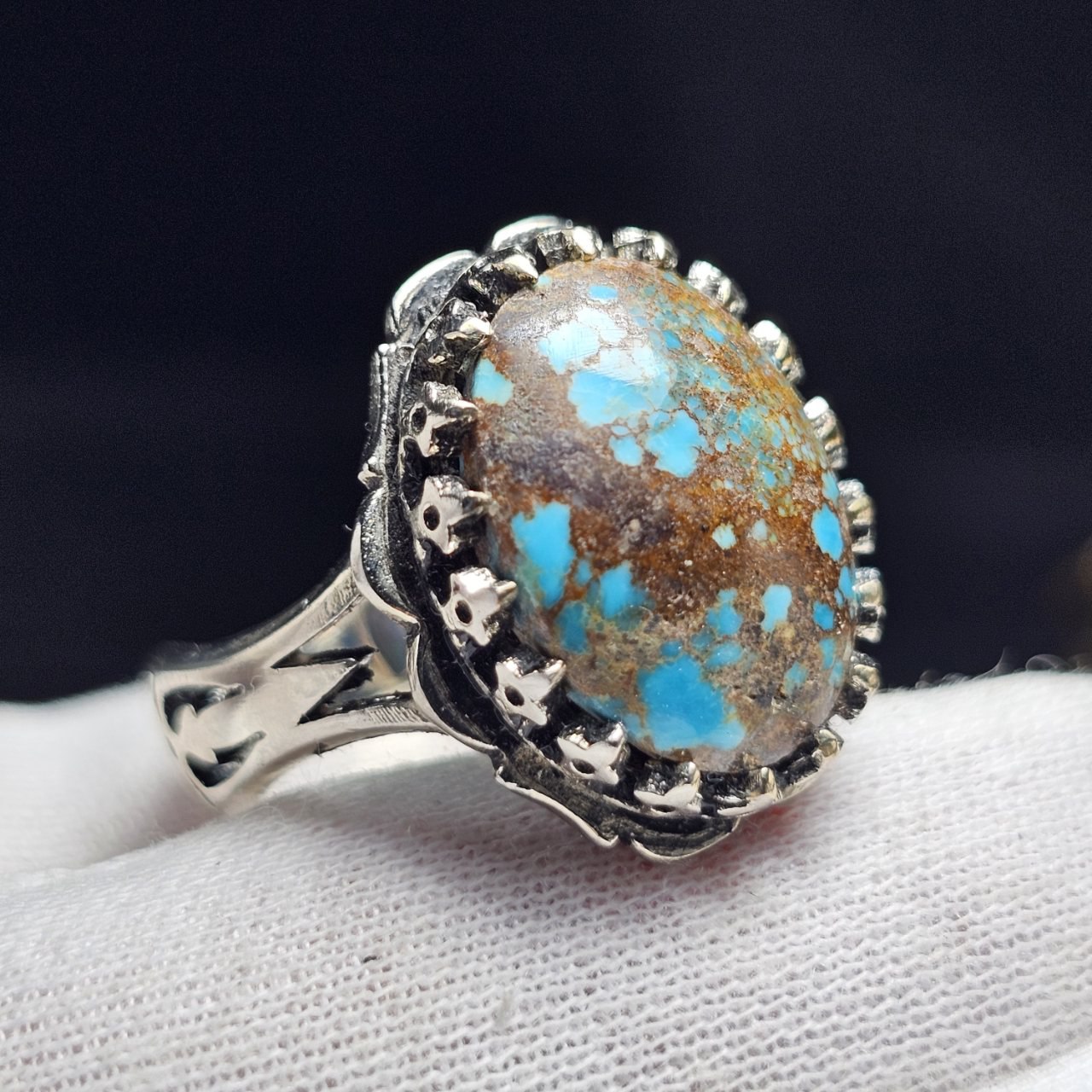 ناموجودانگشتر با سنگ طبیعی فیروزه معدنی نیشابور(ابکاری نقره ای )کد 37886