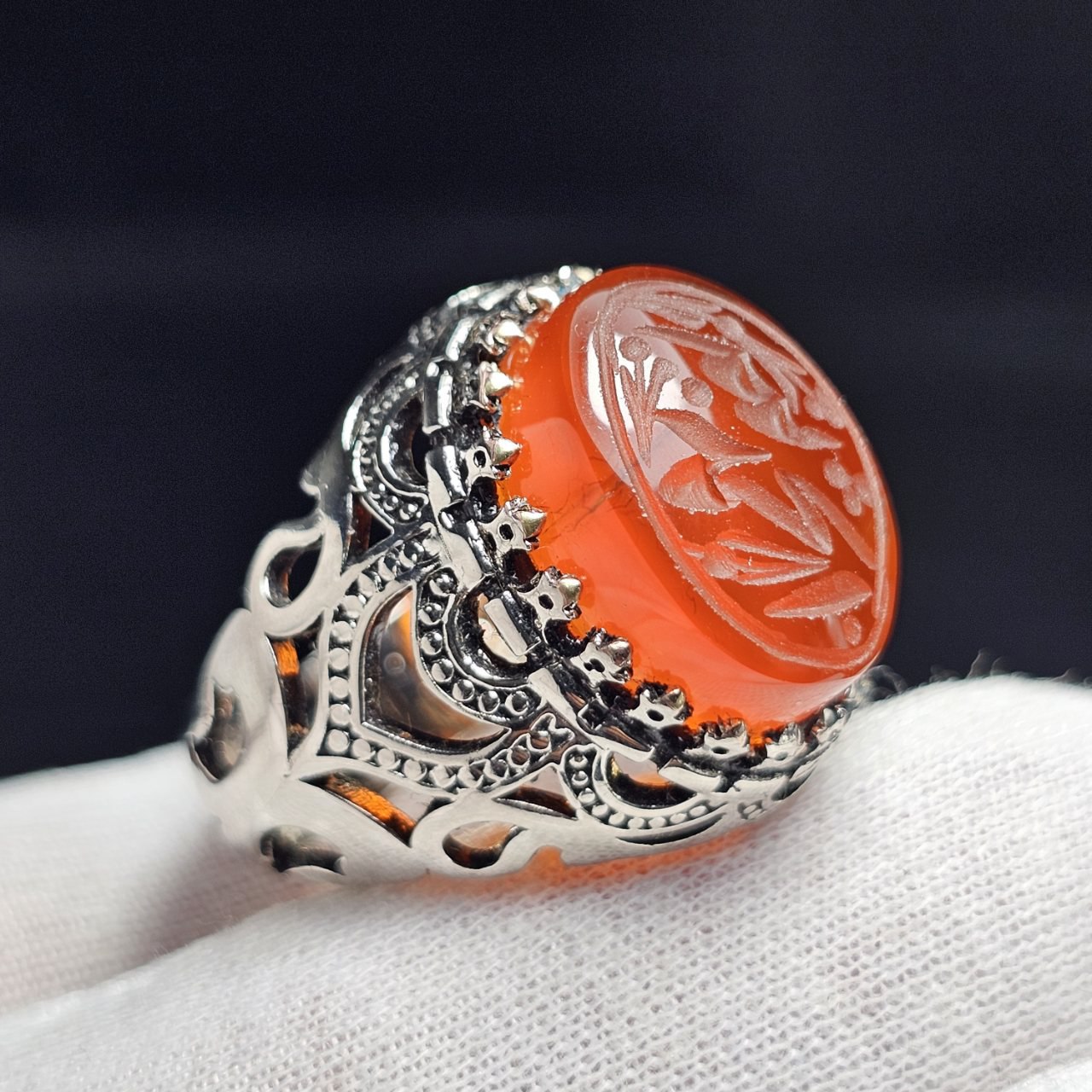 ناموجودانگشتر نقره روس با سنگ عقیق سرخ معدنی خط دست کد 37019