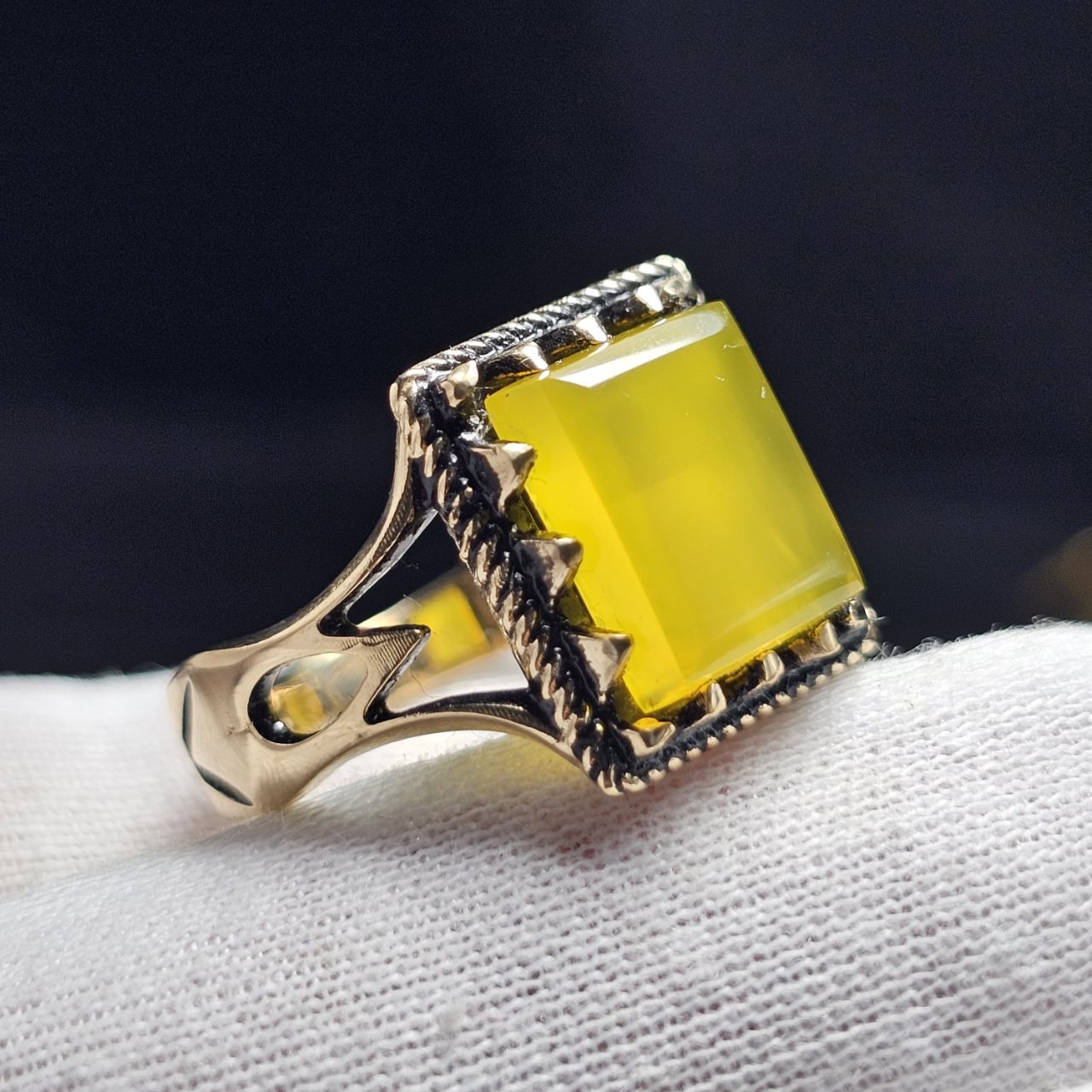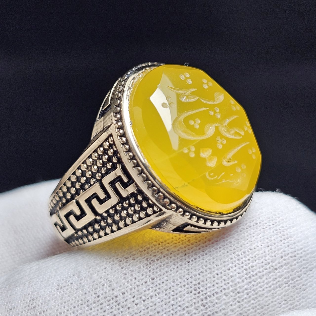 ناموجودانگشتر طلا روس با سنگ عقیق زرد معدنی خط دست کد 37841