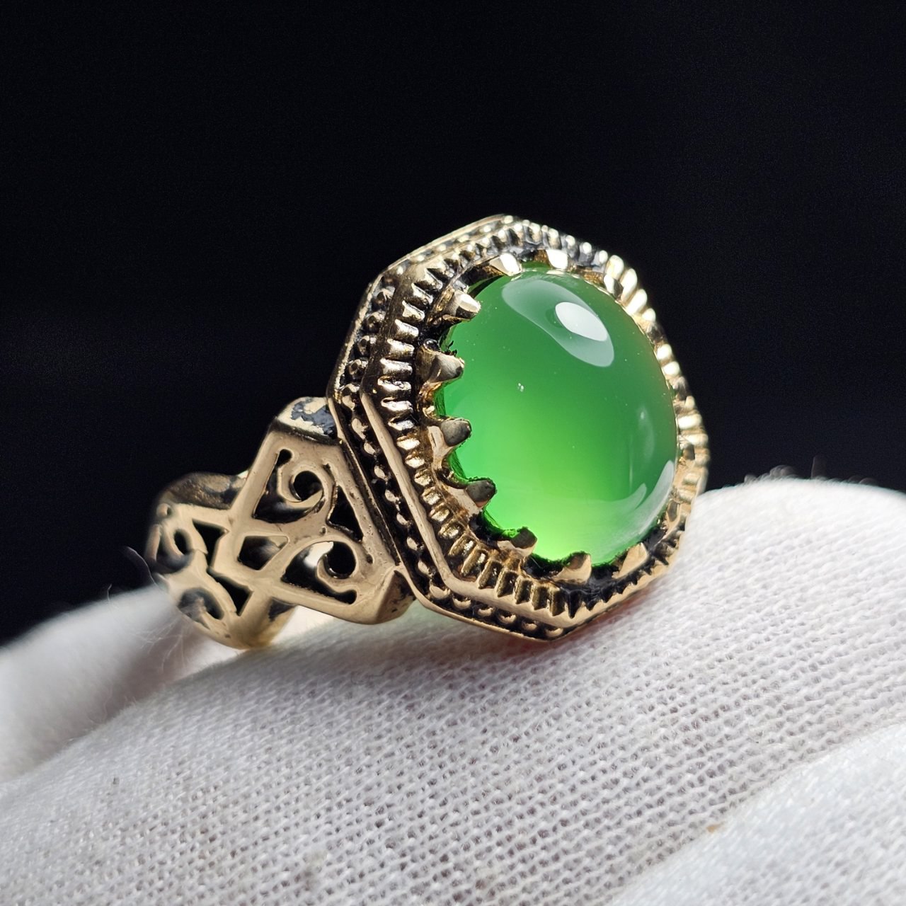ناموجودانگشتر طلا روس با سنگ جید زمردی معدنی کد 37049