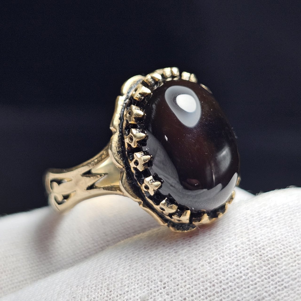 انگشتر طلا روس با سنگ طبیعی عقیق معدنی خراسان کد 37867