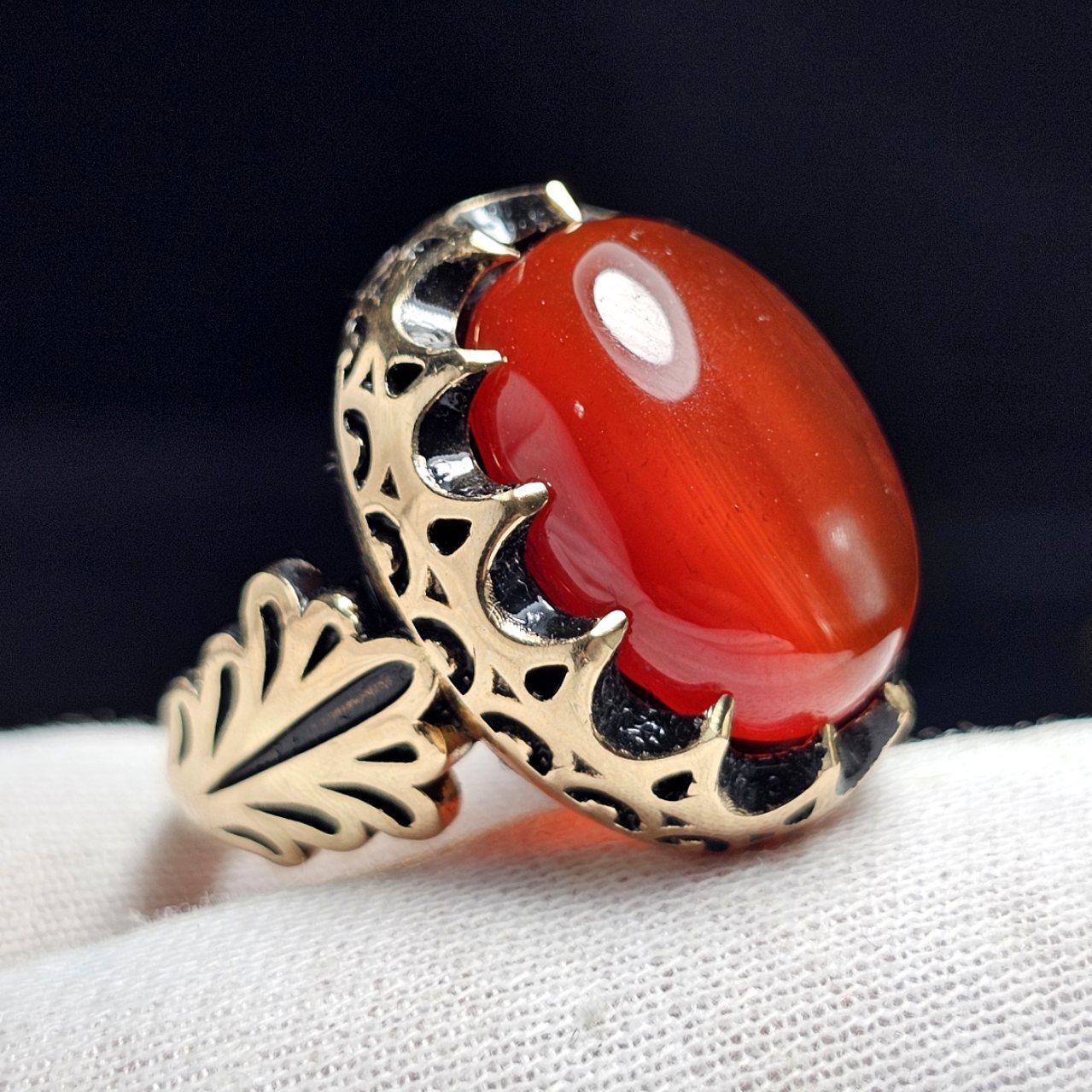 ناموجودانگشتر طلا روس با سنگ عقیق جگری معدنی خراسانی کد 36714