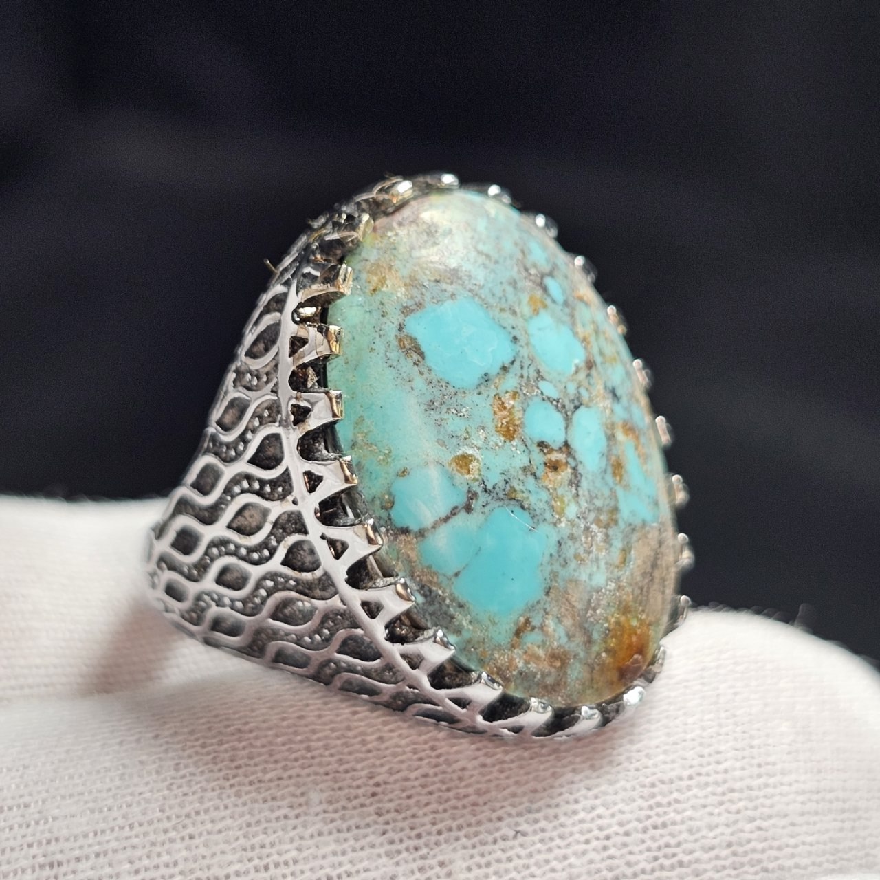 ناموجودانگشتر نقره روس با سنگ طبیعی فیروزه درشت معدنی نیشابور کد 37510