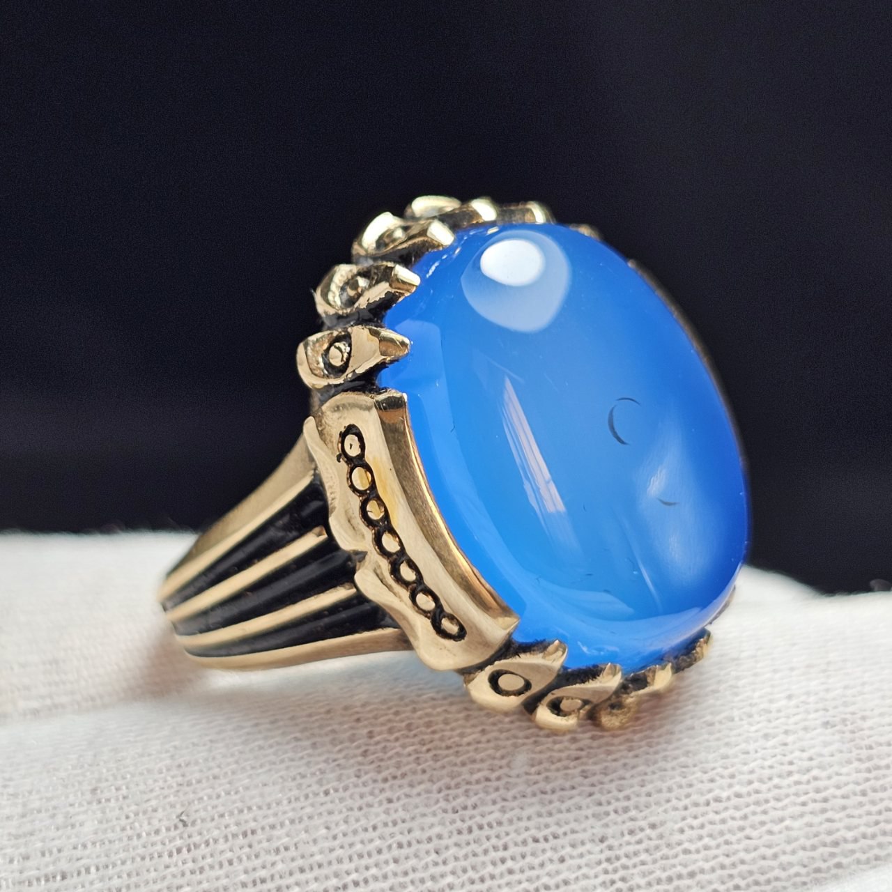 ناموجودانگشتر طلا روس با سنگ عقیق آبی معدنی کد 37898
