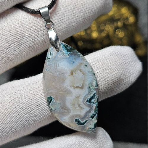 گردن آویز سنگ طبیعی کریزی لیس اگات معدنی کد 31344