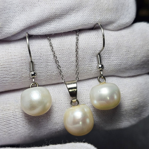 ست گوشواره و گردنبند مروارید اصلی پرورشی کد 34564