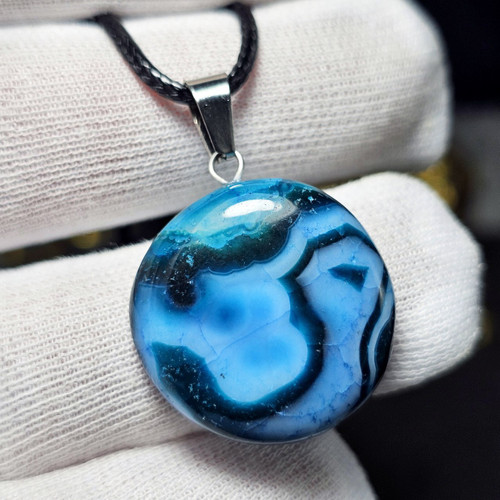 گردن آویز سنگ طبیعی عقیق کبود معدنی تراش فست کد 33458