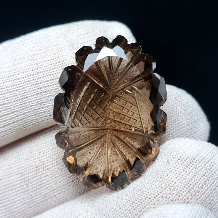 نگین درشت کلکسیونی سنگ طبیعی کوارتز دودی معدنی وزن ۵۳ قیراط کد 30157