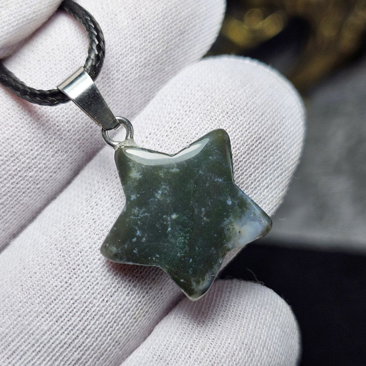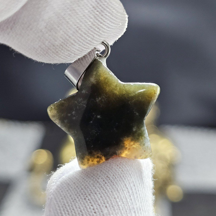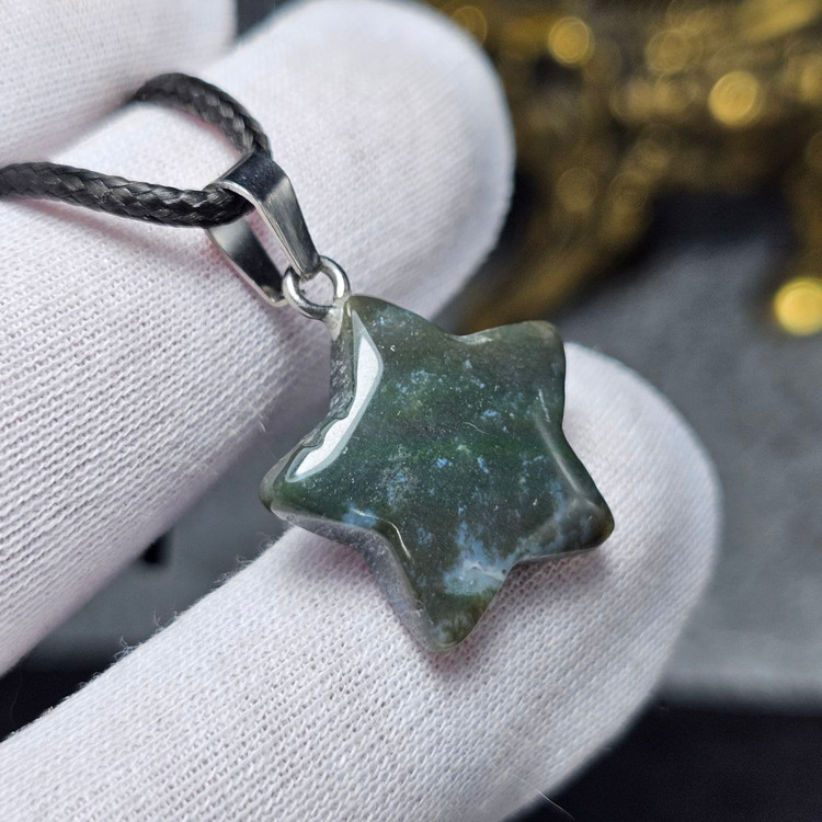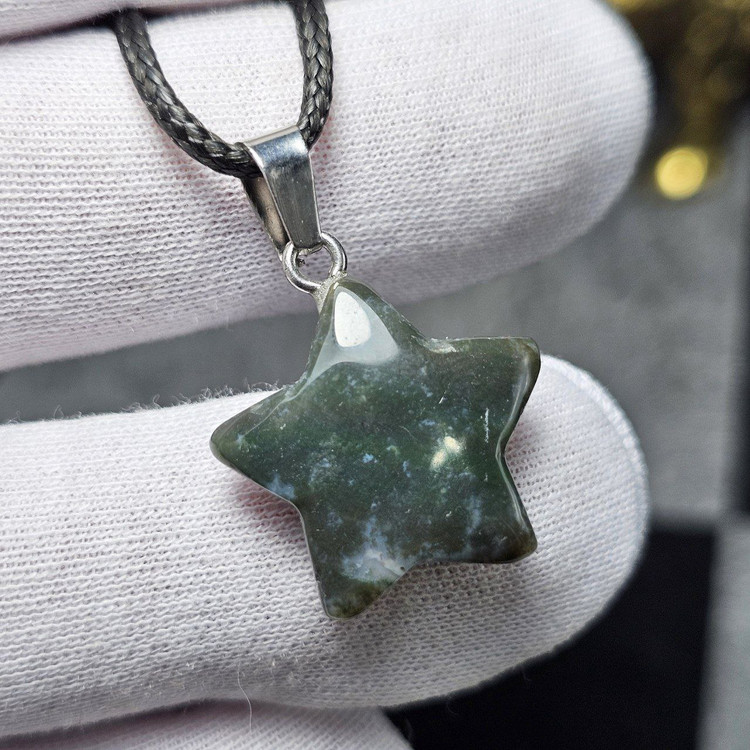 آویز گردنبد سنگ طبیعی عقیق خزه ای معدنی