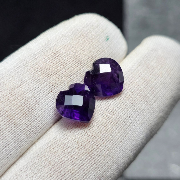 جفت نگین سنگ آمیتیست معدنی تراش قلبی ۶/۴۵ قیراط کد 32004