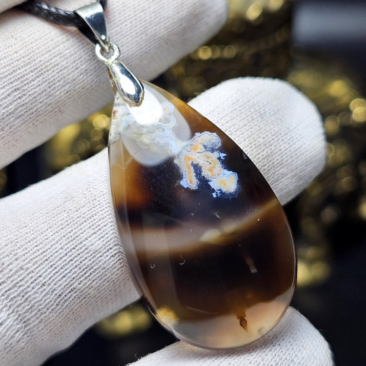 گردن آویز سنگ طبیعی عقیق شجر شکوفه ای معدنی فردوس کد 31177