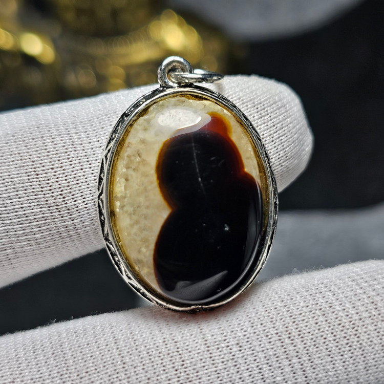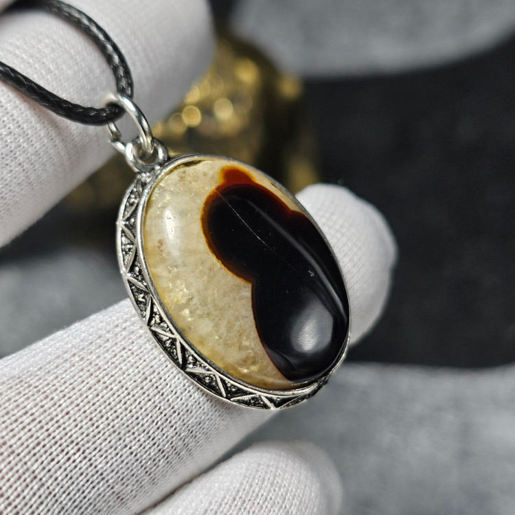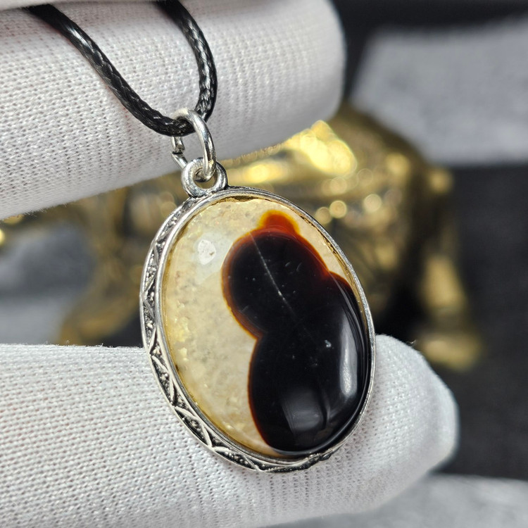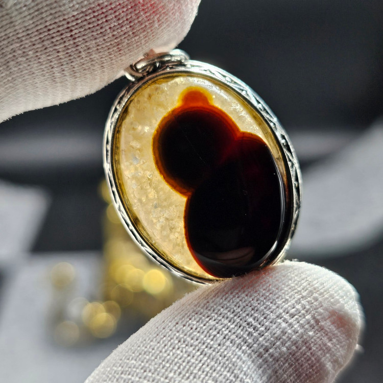 گردن آویز سنگ عقیق ژئود معدنی خراسانی طرح خاص ( دور قاب رنگ ثابت )