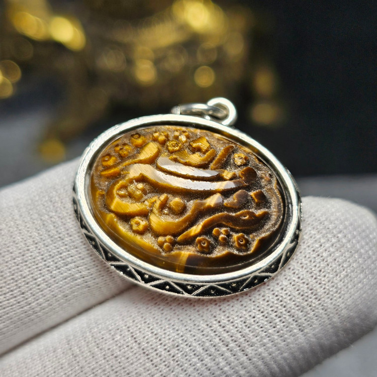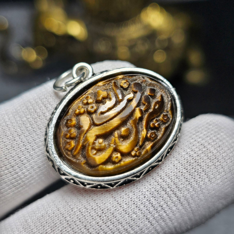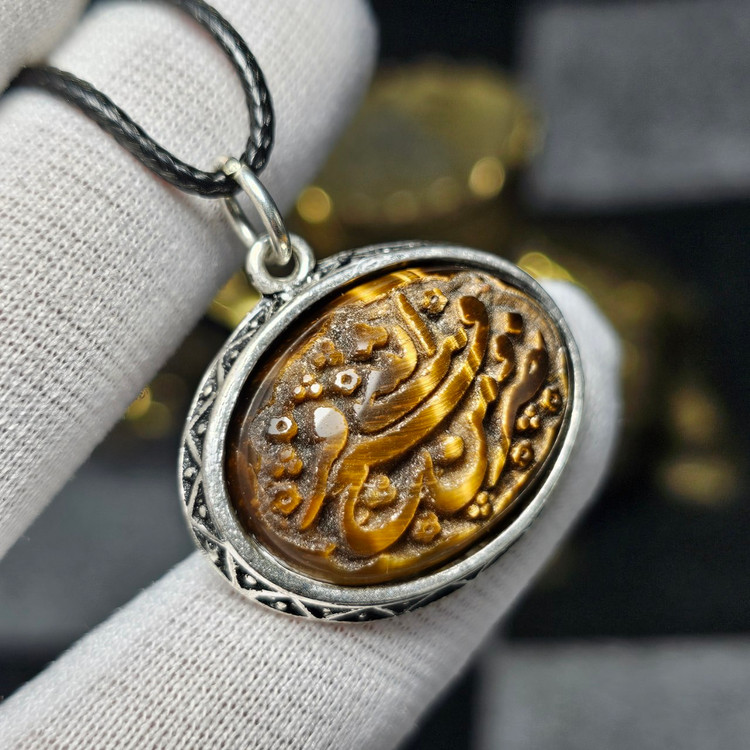 گردن آویز سنگ طبیعی چشم ببر معدنی
