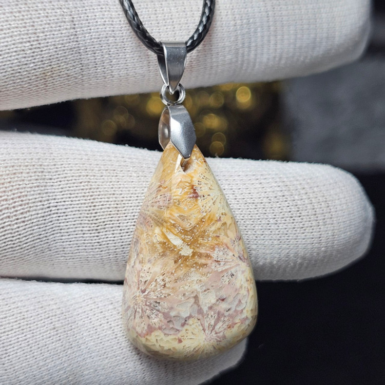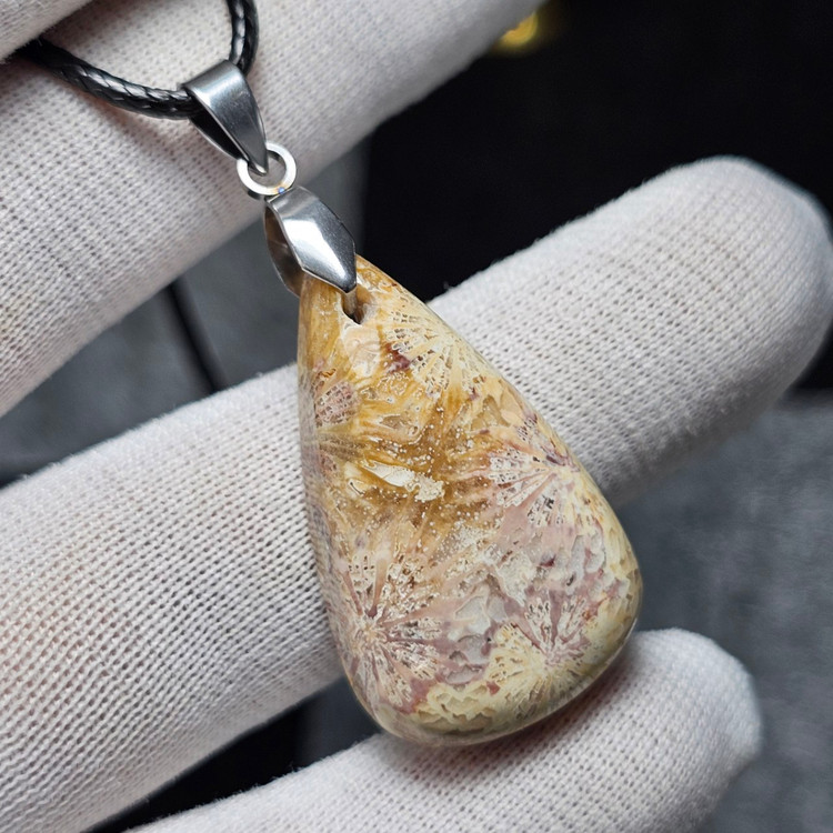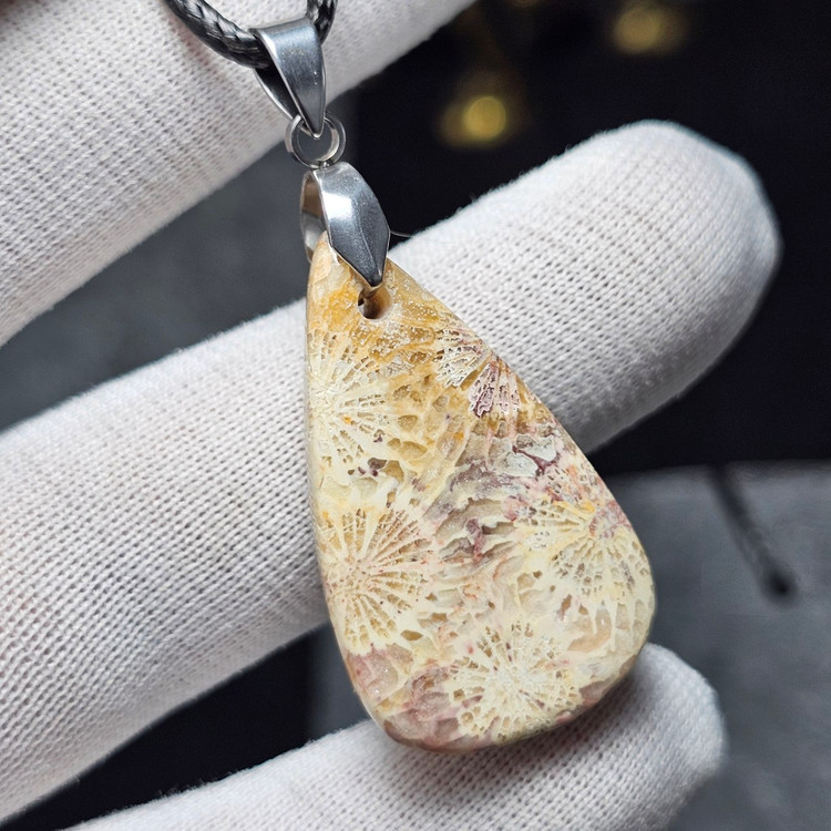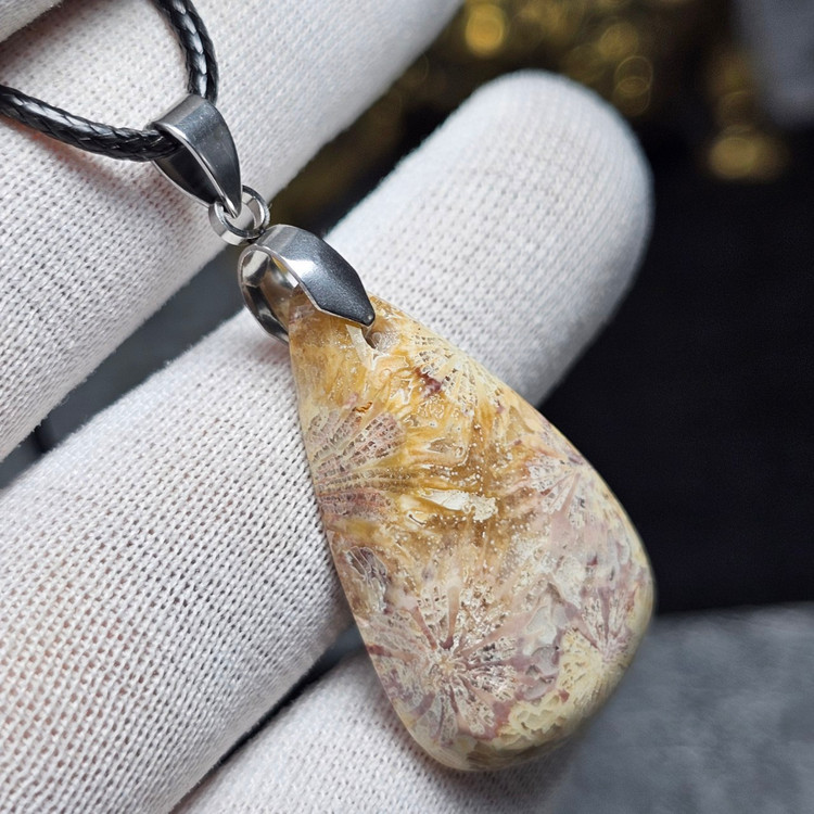 گردن آویز سنگ طبیعی فسیل مرجان معدنی