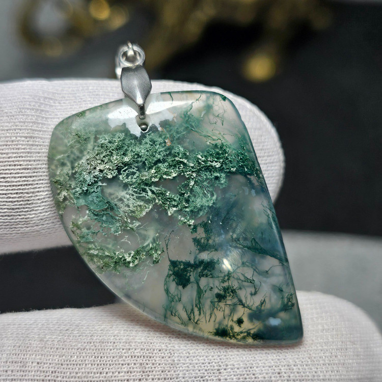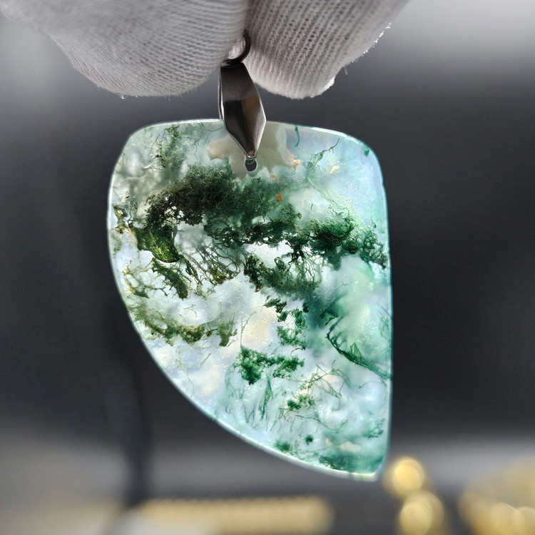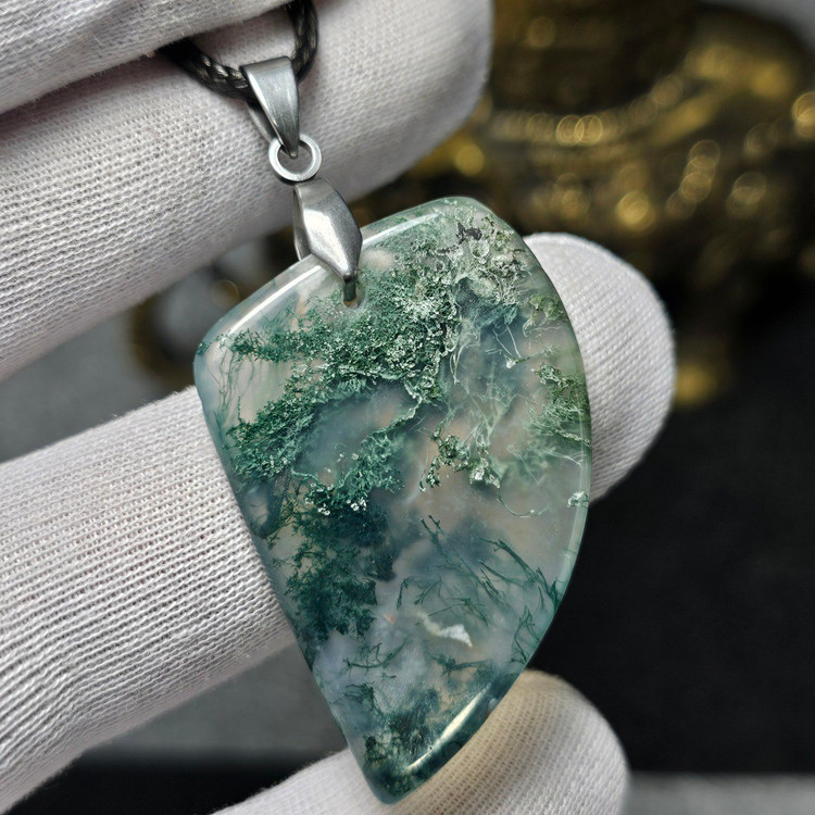 آویز گردنبند سنگ طبیعی عقیق خزه ای معدنی