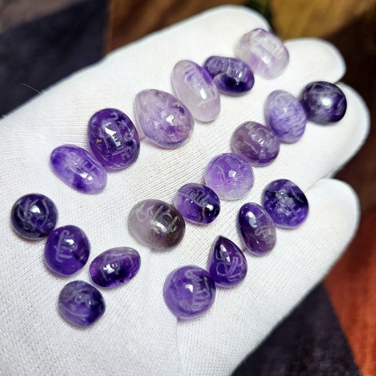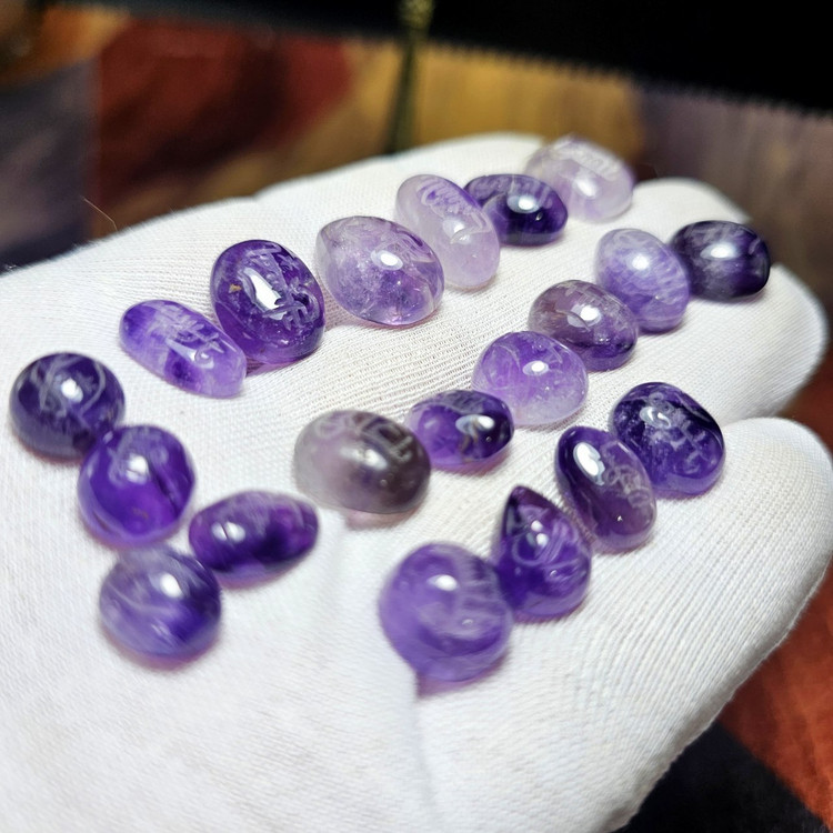 پک ۲۰ عددی نگین های سنگ آمیتیست معدنی با خط کوفی کد G81032