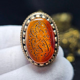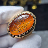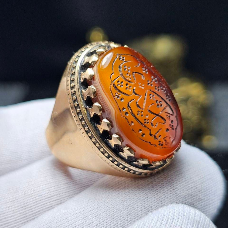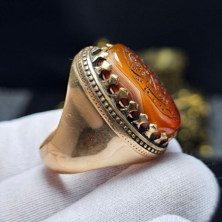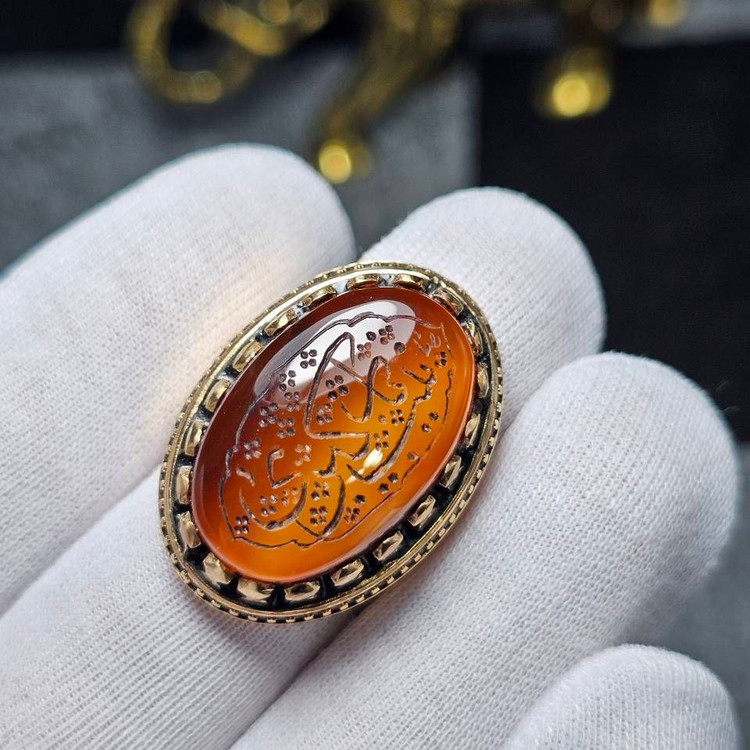 انگشتر طلا روس با سنگ عقیق معدنی خراسانی حکاکی دست