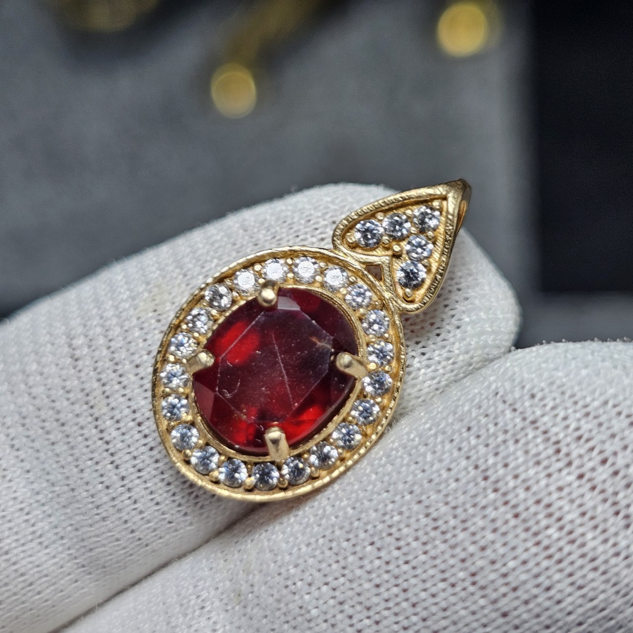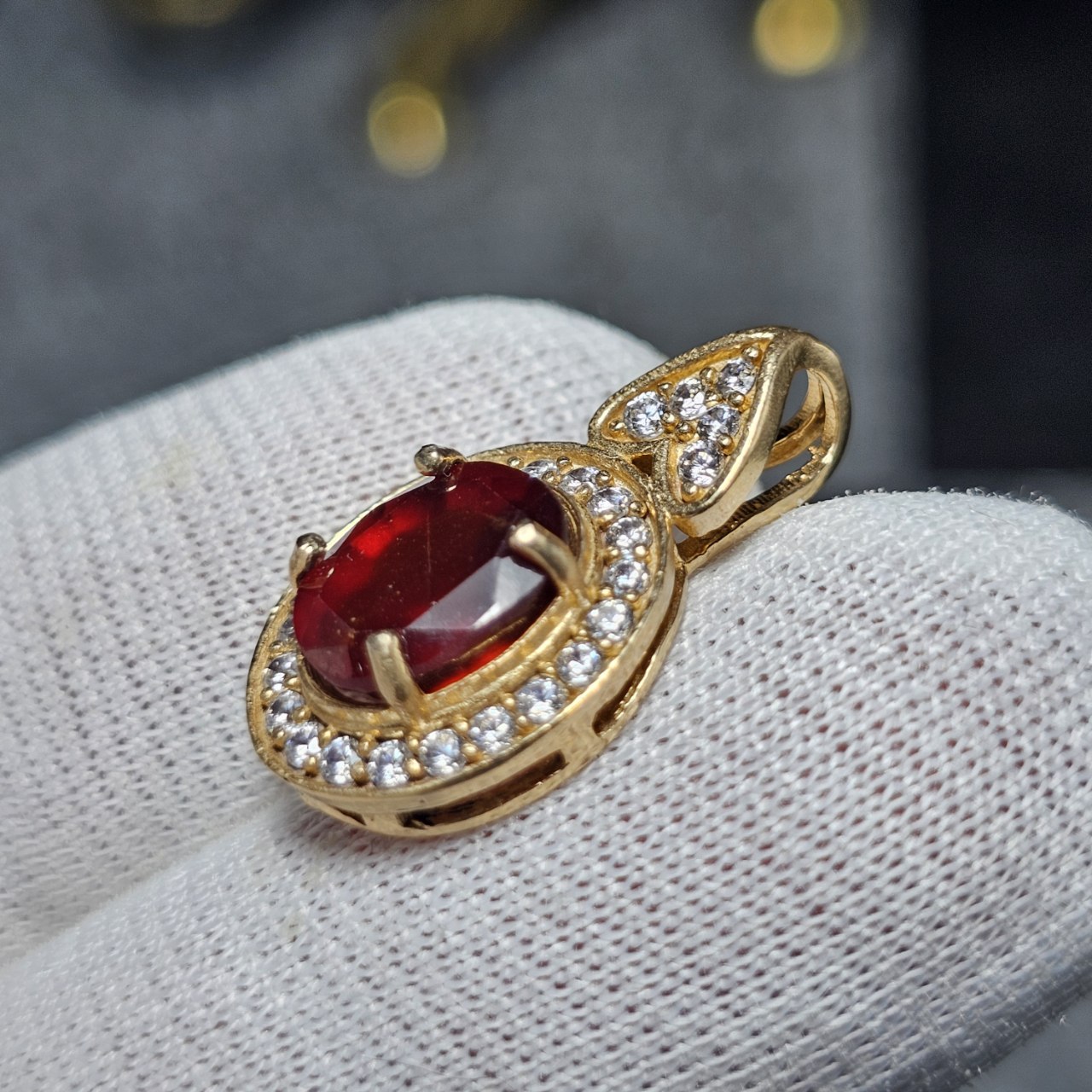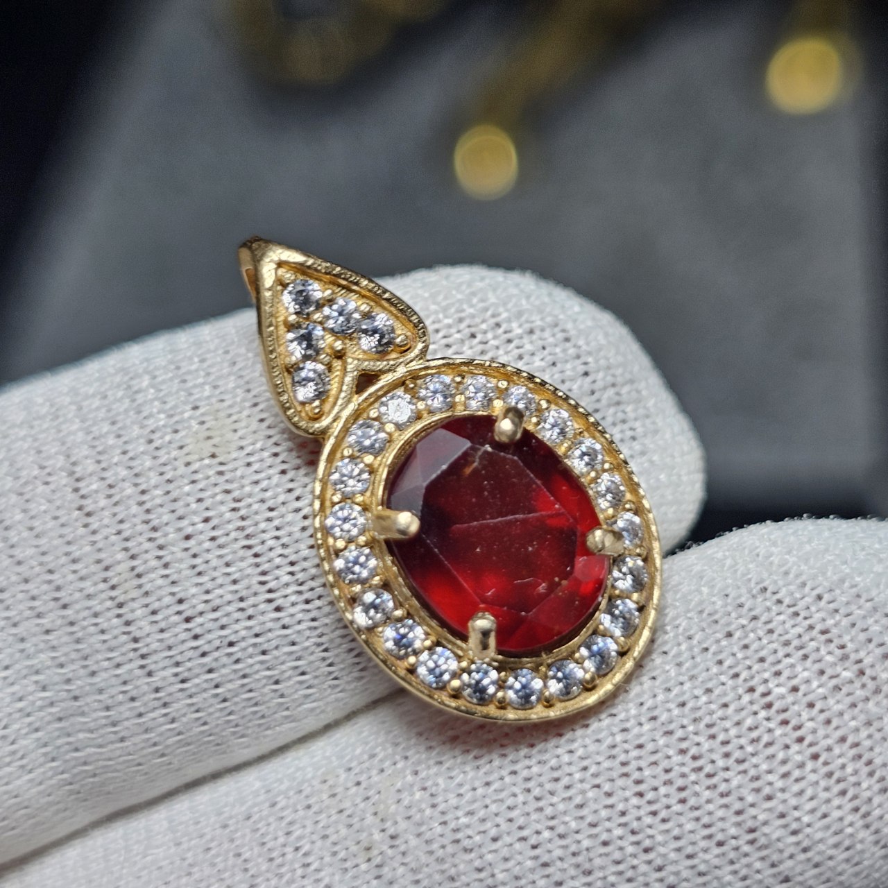 آویز گردنبند طلا روس با سنگ گارنت معدنی
