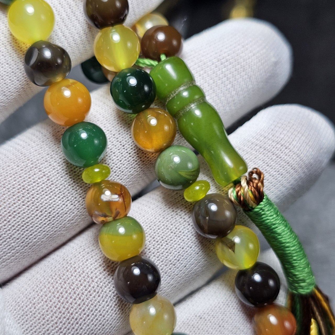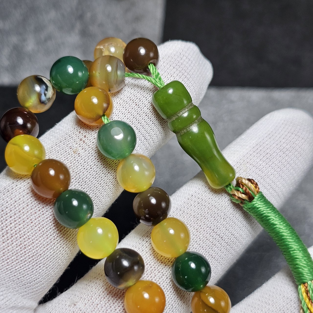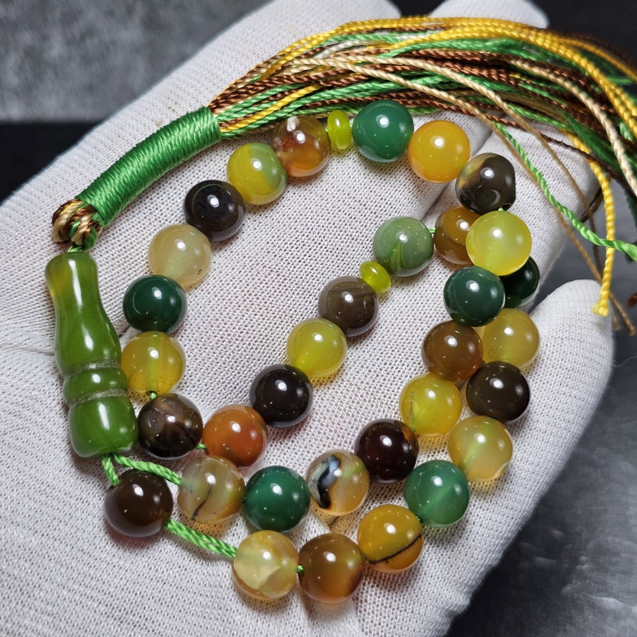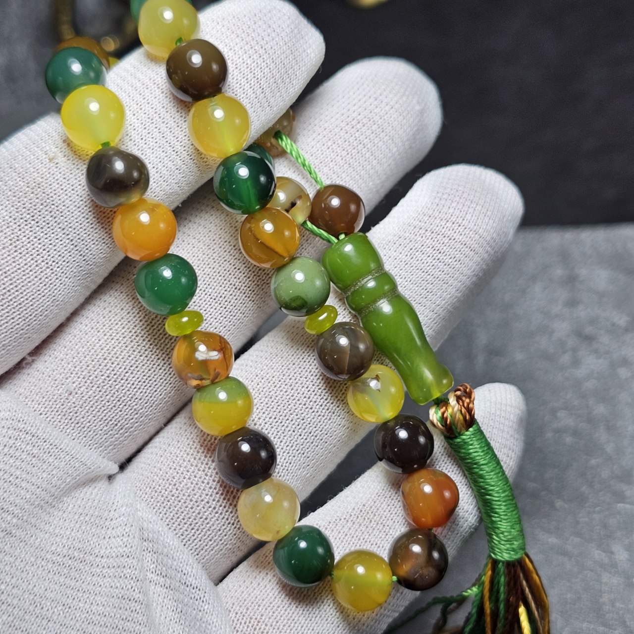 تسبیح ۳۳ دانه عقیق سبز زرد معدنی