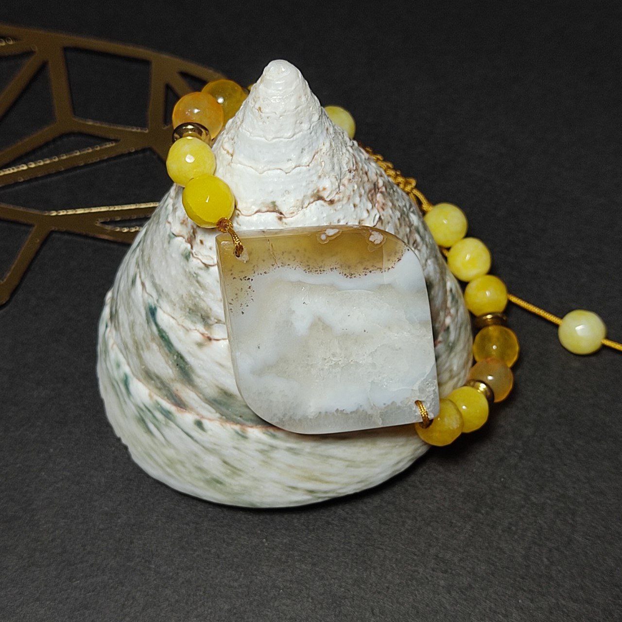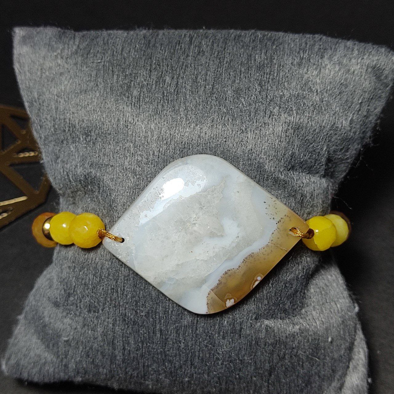 دستبند سنگ عقیق معدنی خراسانی با مهره های جید معدنی
