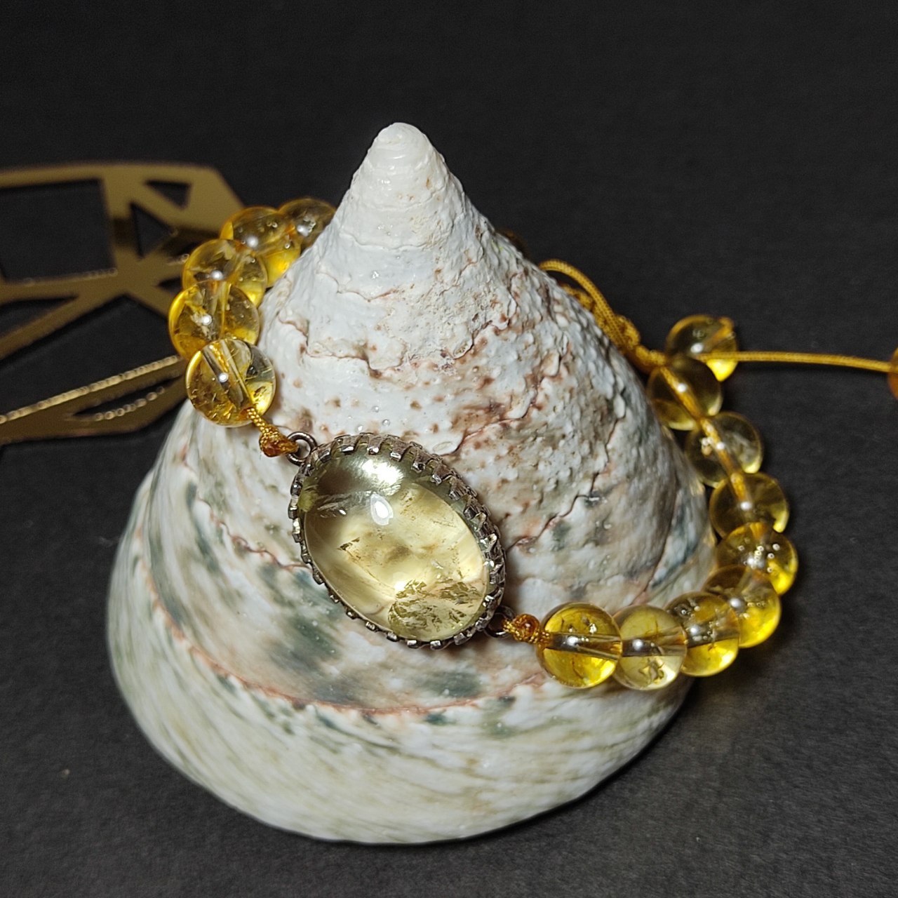 دستبند دور قاب نقره با لمون کوارتز آفریقایی و مهره های سیترین معدنی