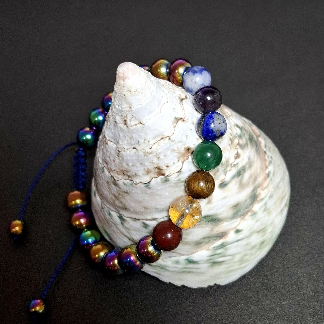 دستبند سنگ های هفت گانه و حدید معدنی کد 34783