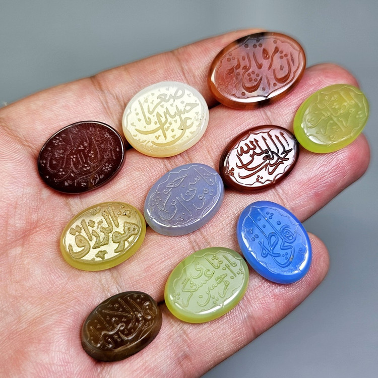 پک ۱۰ عددی نگین های سنگ عقیق معدنی حکاکی دست کد G81122