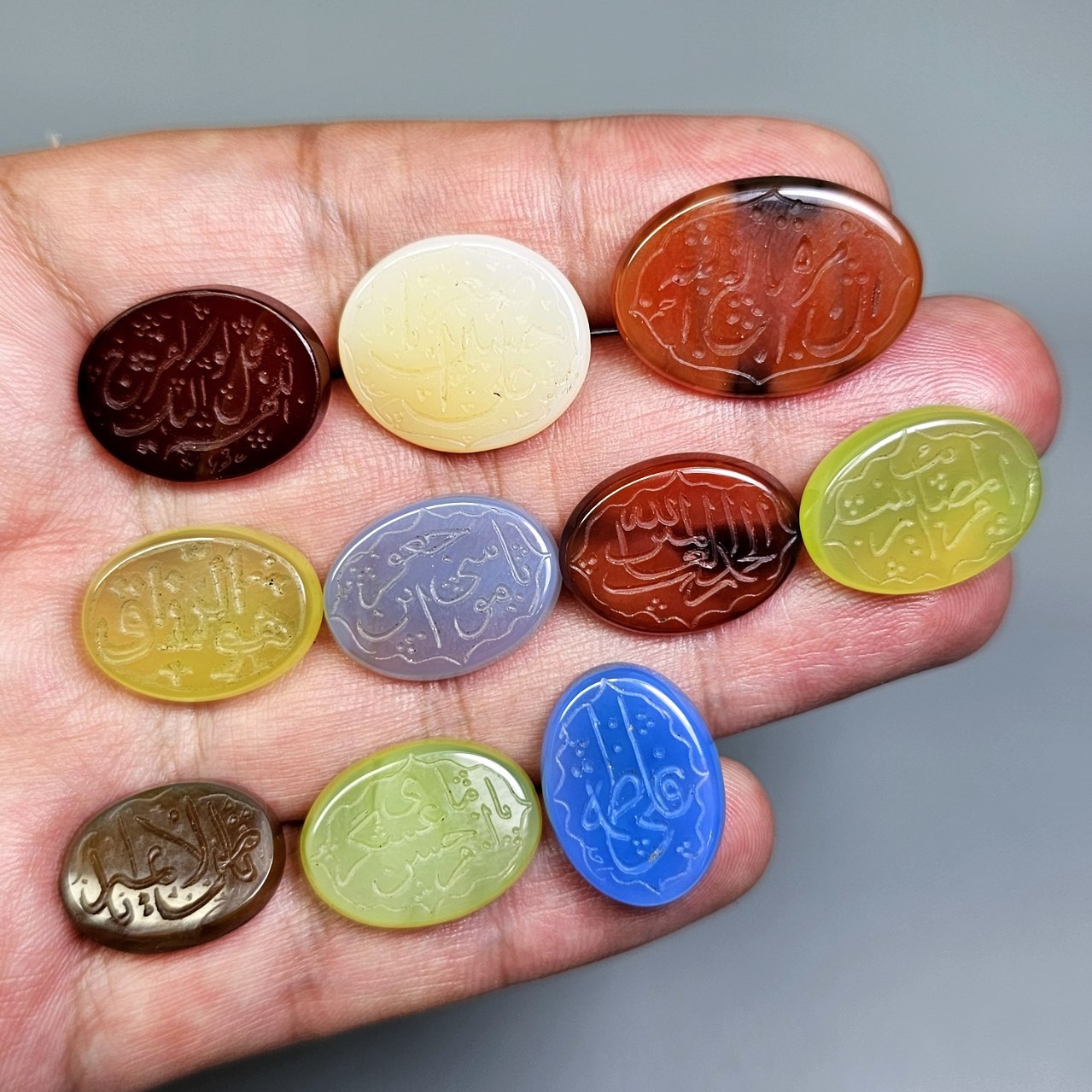 پک ۱۰ عددی نگین های سنگ عقیق معدنی حکاکی دست کد G81122
