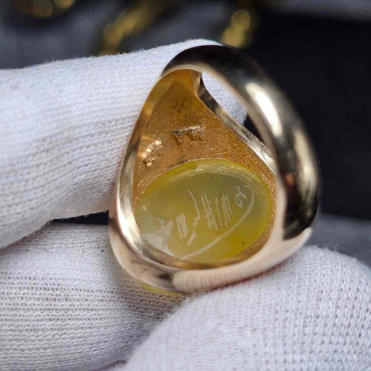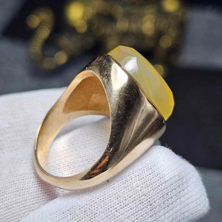 انگشتر طلا روس با سنگ عقیق زرد معدنی خراسانی تراش فست دعای شرف الشمس
