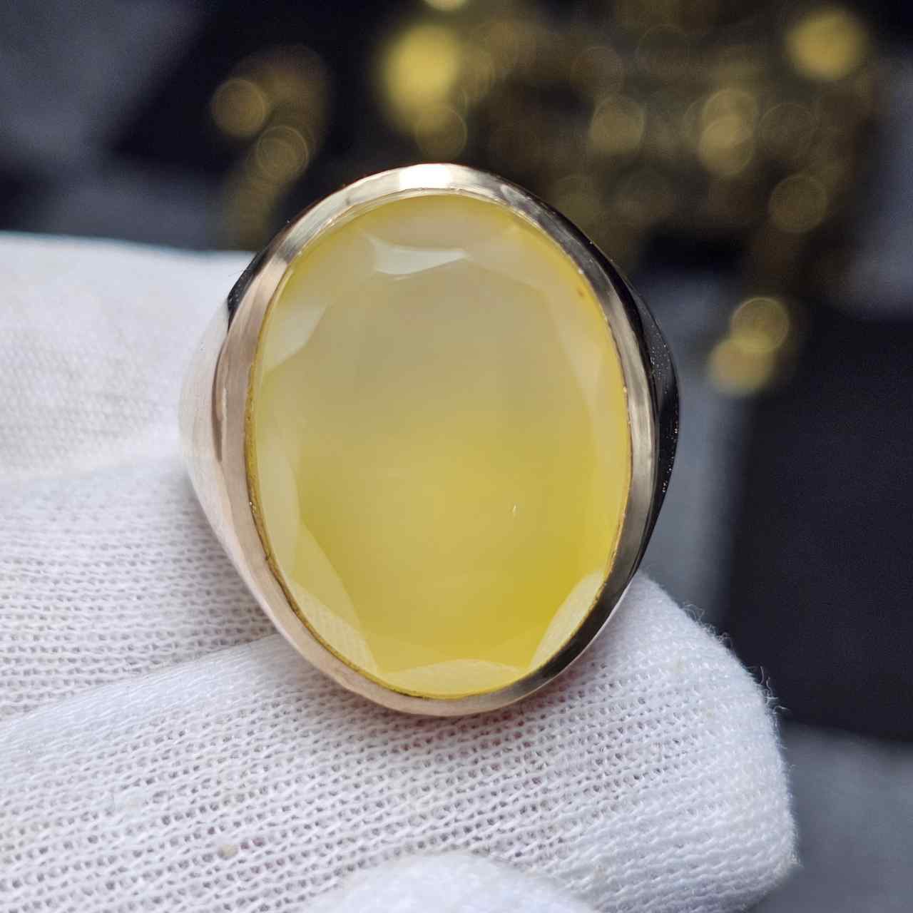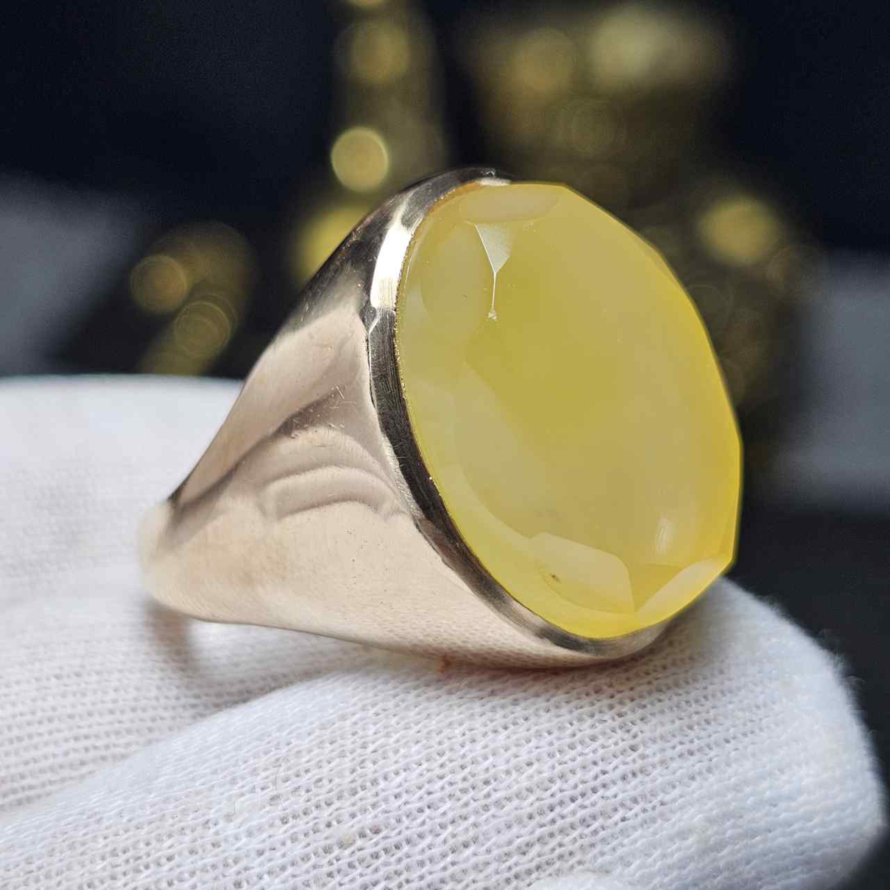 انگشتر طلا روس با سنگ عقیق زرد معدنی خراسانی تراش فست دعای شرف الشمس