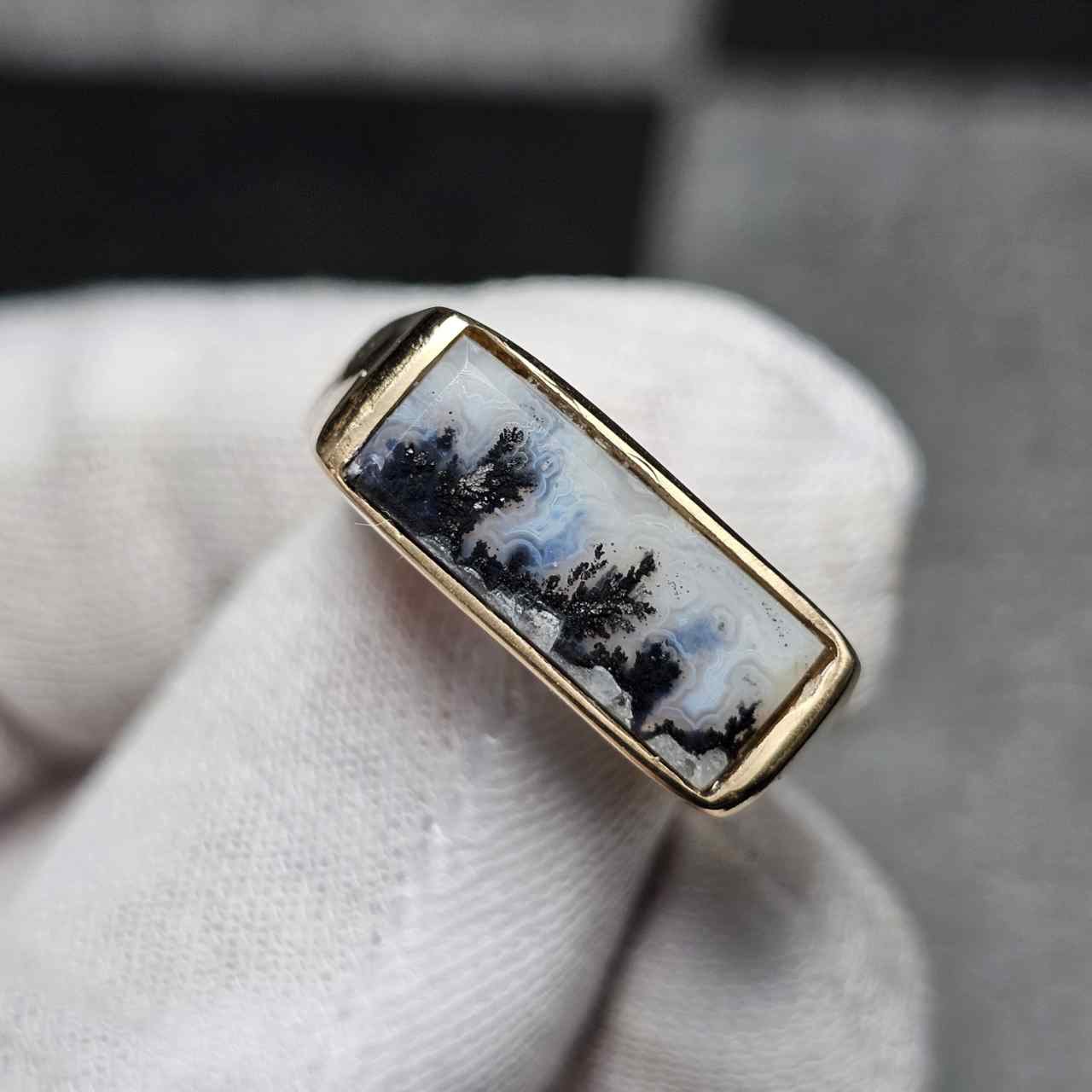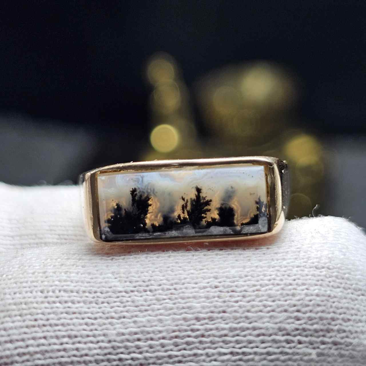 انگشتر طلا روس با سنگ طبیعی عقیق شجر خراسانی