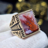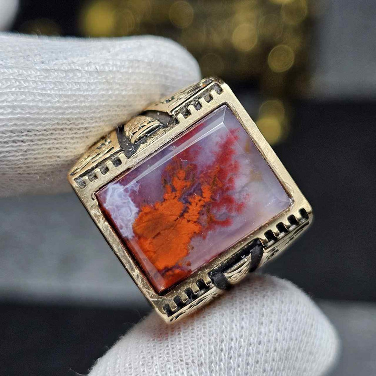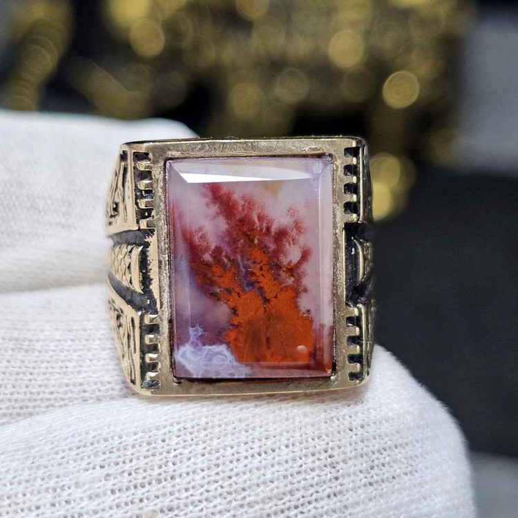 انگشتر طلا روس با سنگ طبیعی عقیق شجر خراسانی