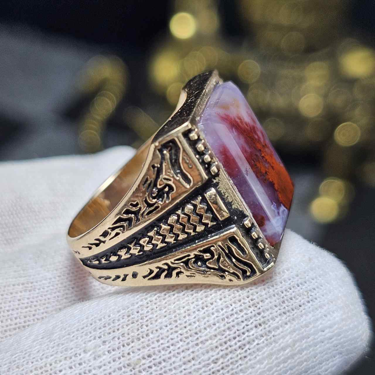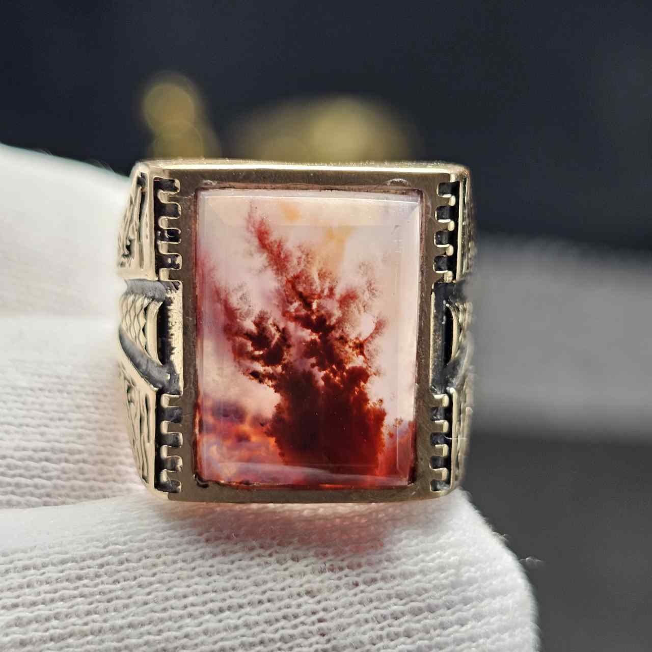 انگشتر طلا روس با سنگ طبیعی عقیق شجر خراسانی