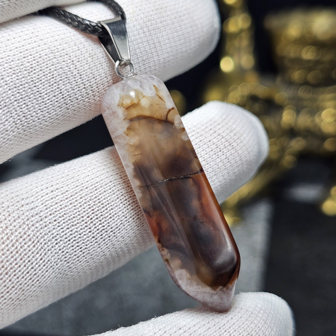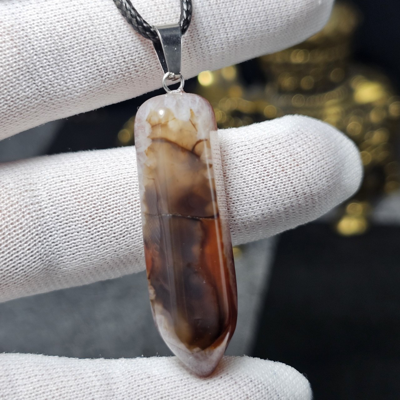 آویز گردنبند منشور سنگ عقیق ژئود معدنی کد 35876