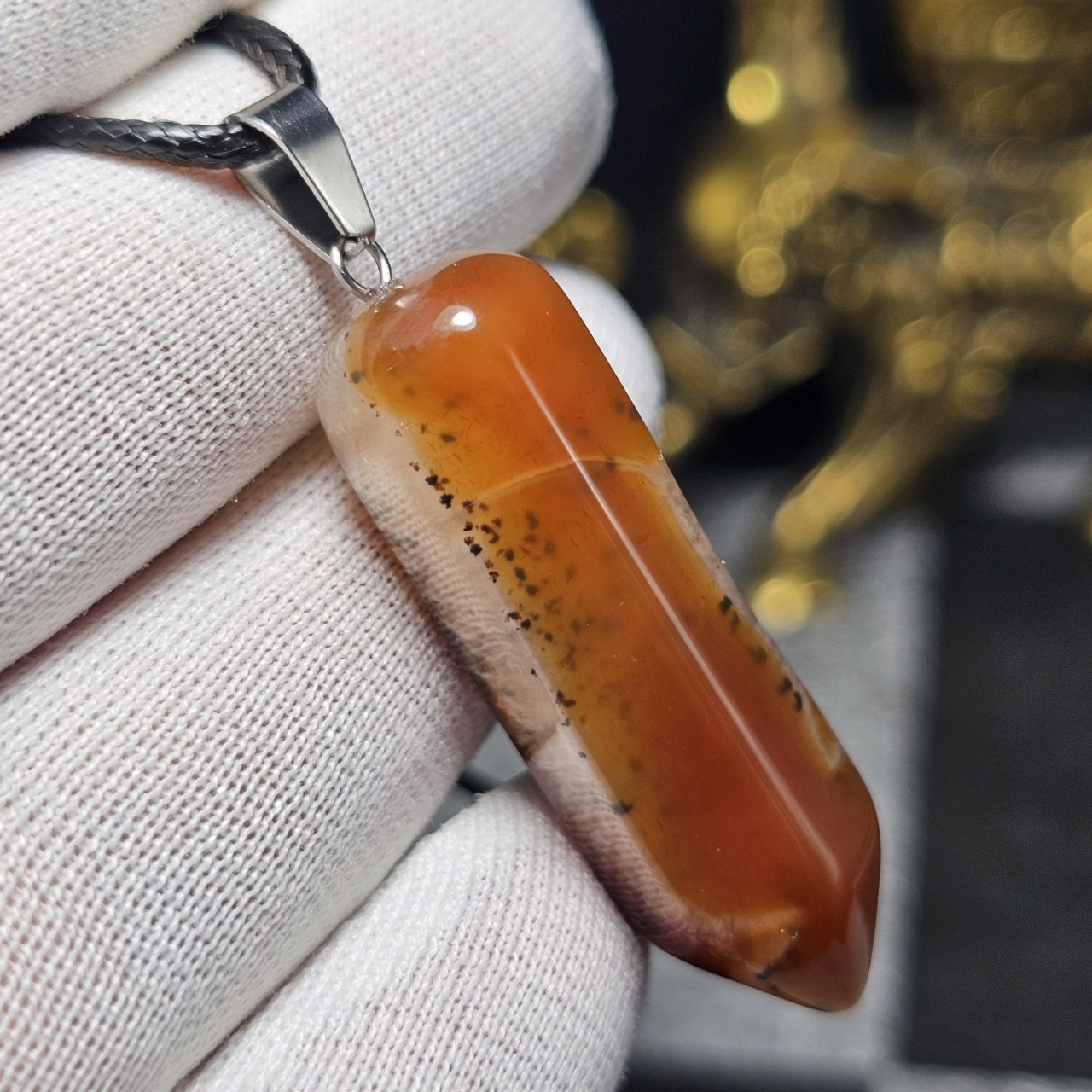 آویز گردنبند منشور سنگ عقیق ژئود معدنی
