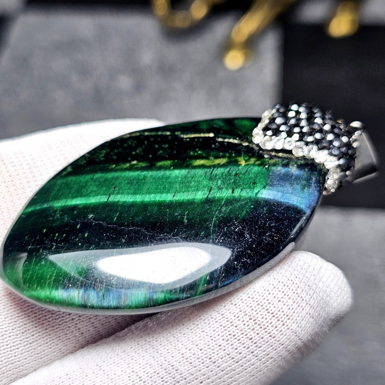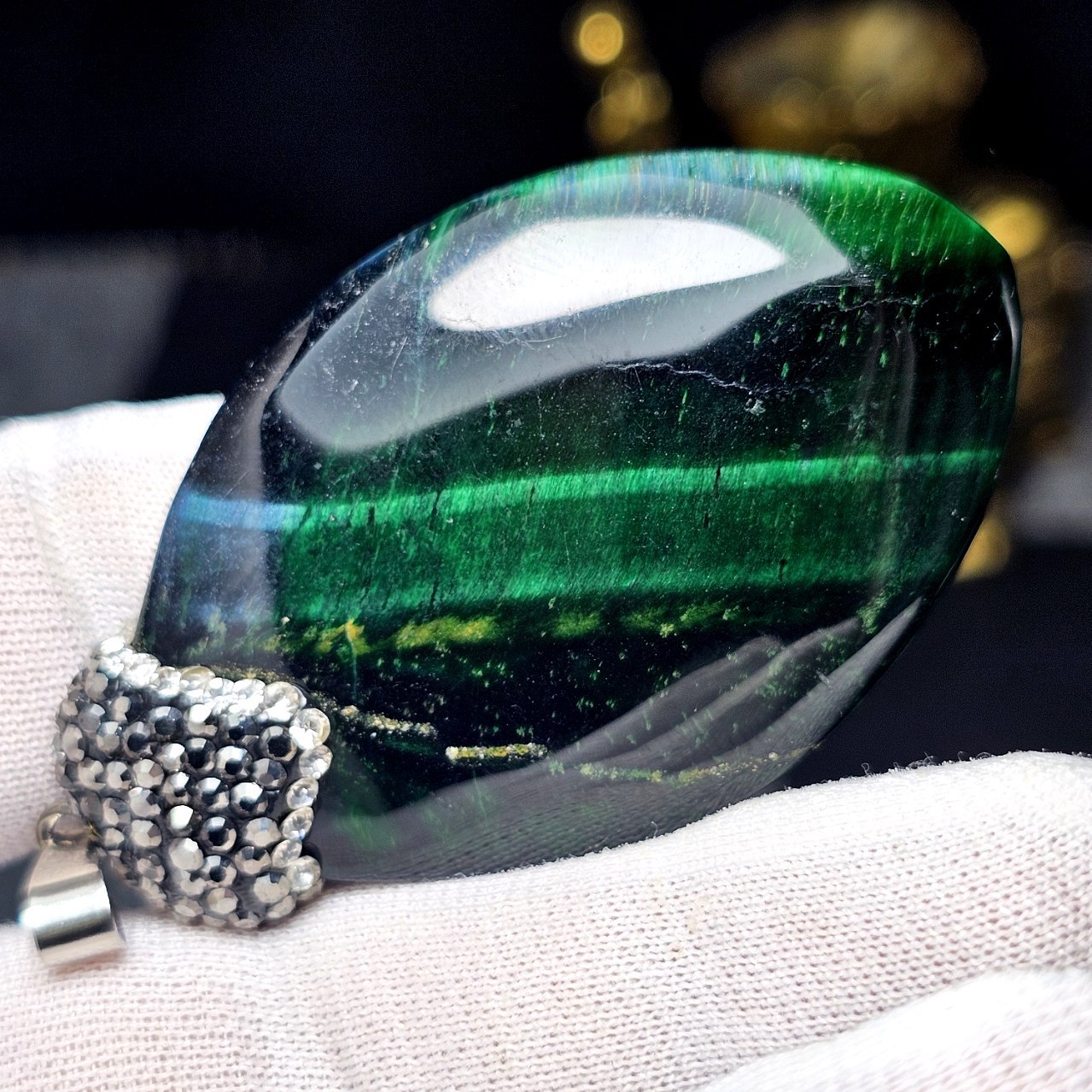 آویز گردنبند سنگ چشم ببر سبز معدنی