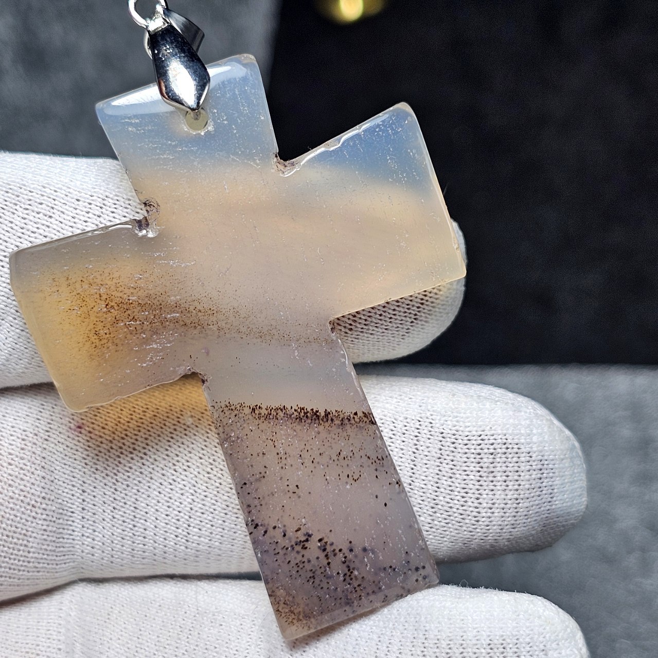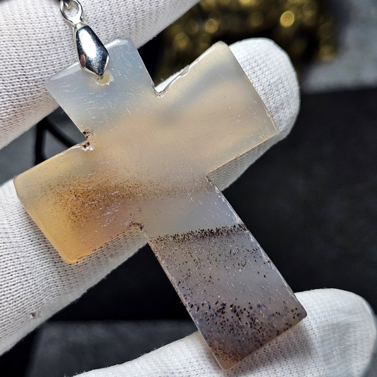 آویز گردنبند درشت سنگ عقیق شن دار معدنی