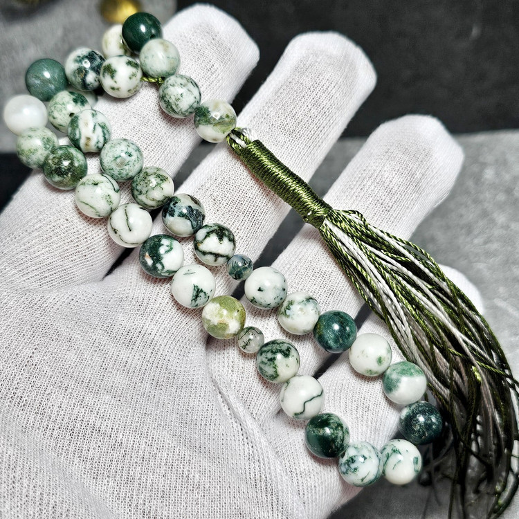 تسبیح ۳۳ دانه سنگ عقیق خزه ای معدنی