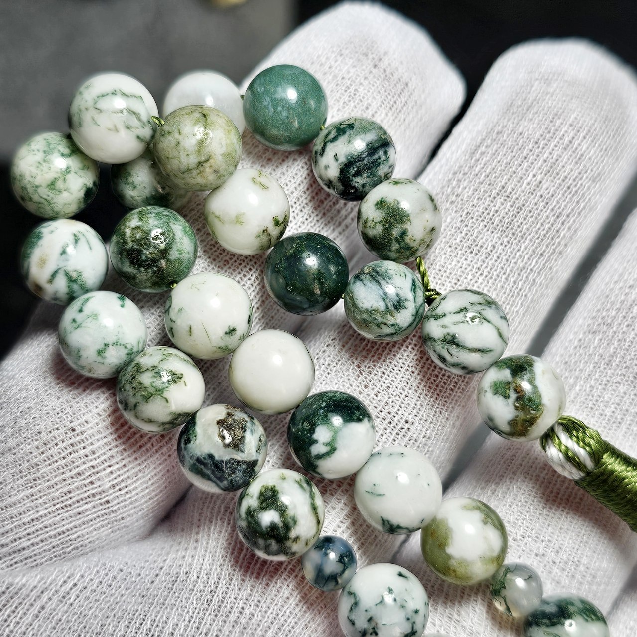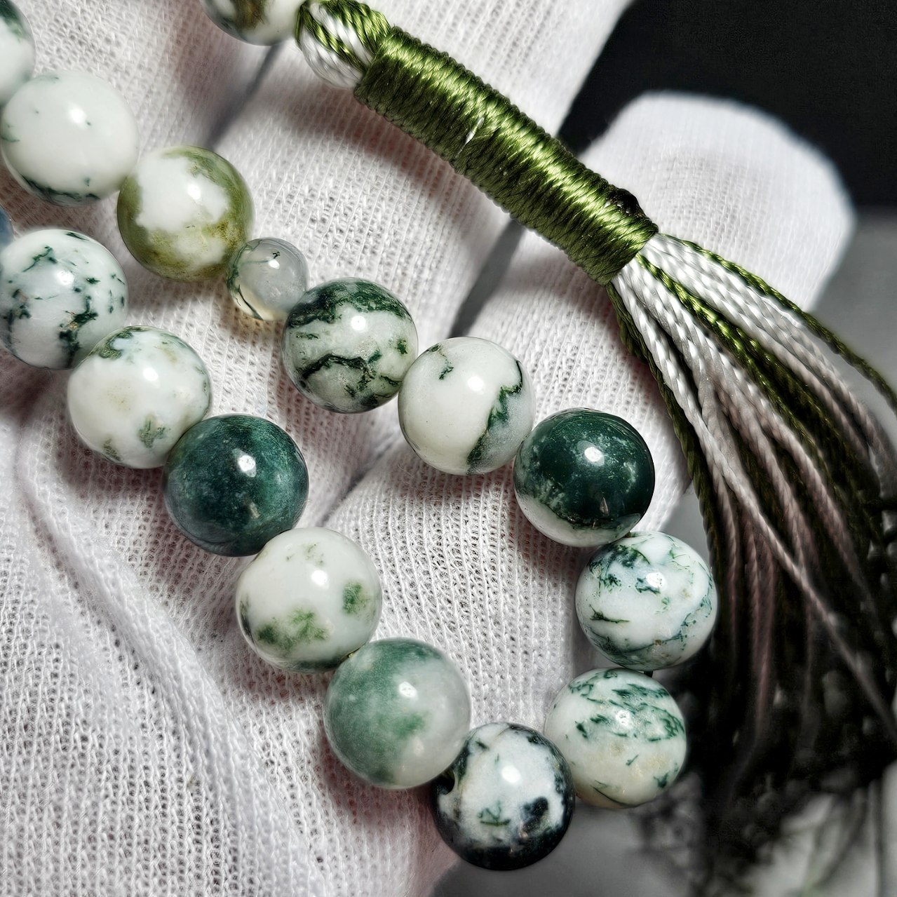 تسبیح ۳۳ دانه سنگ عقیق خزه ای معدنی