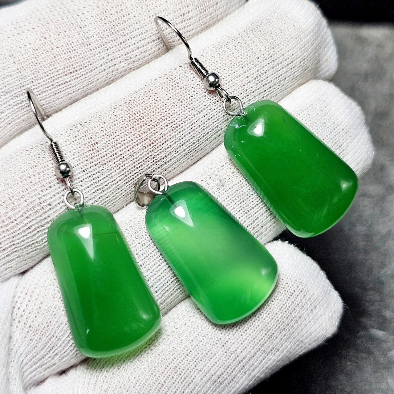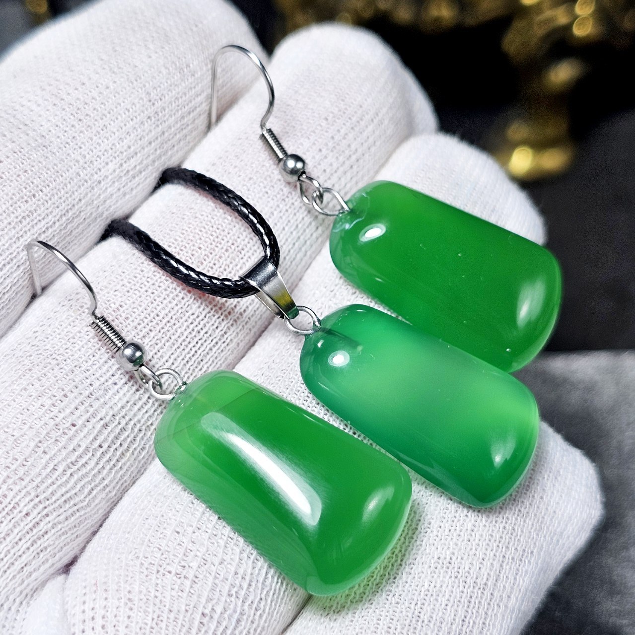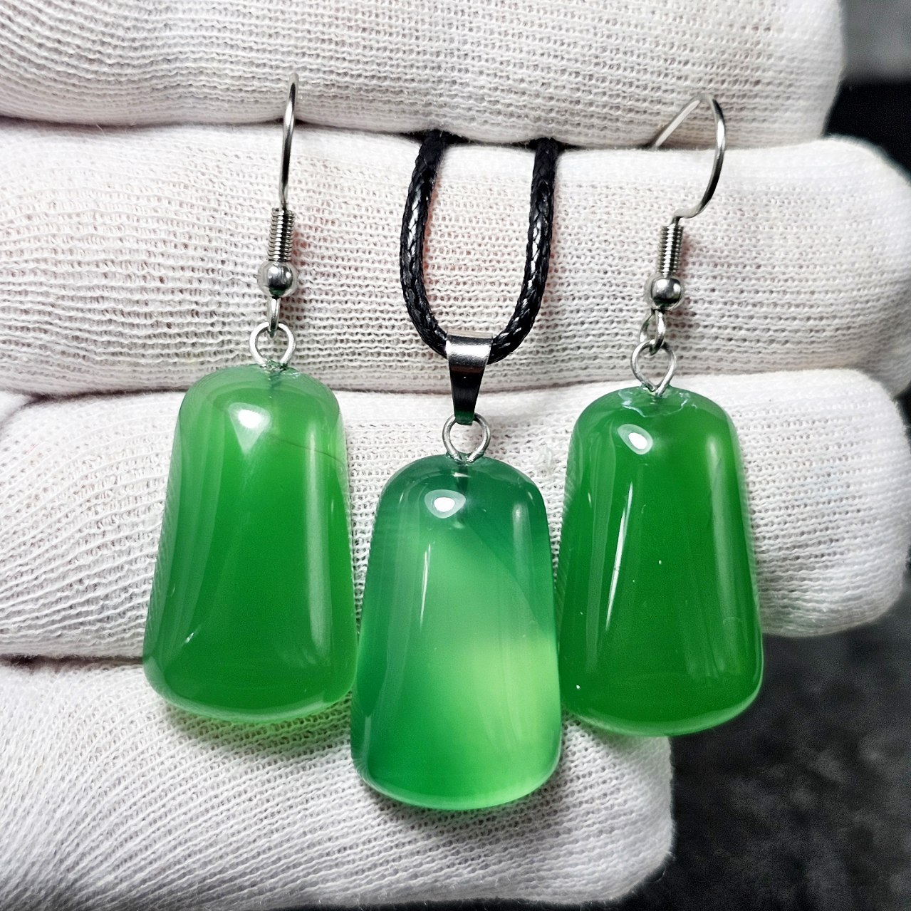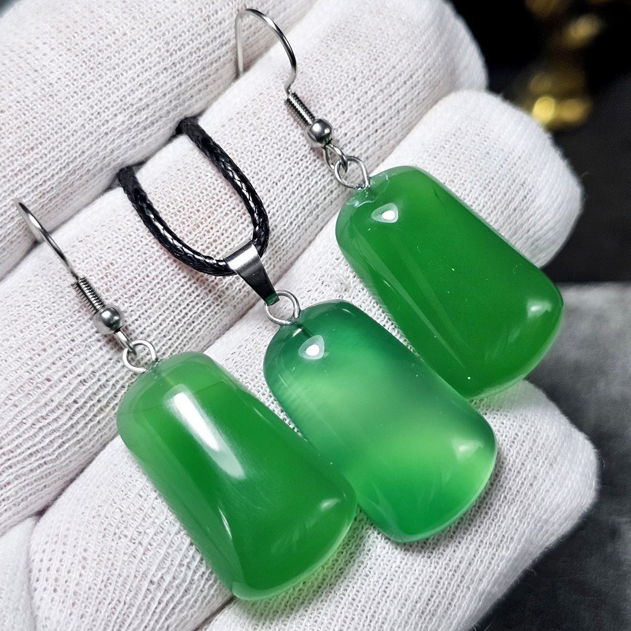 ست آویز و گوشواره سنگ عقیق سبز معدنی