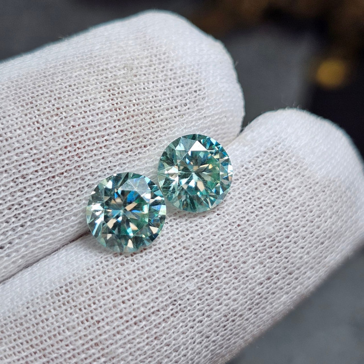 جفت نگین سنگ موزانایت خوش رنگ اصلی کد 36925