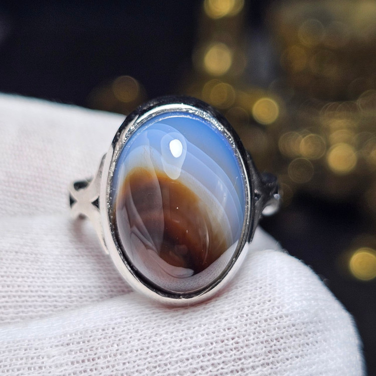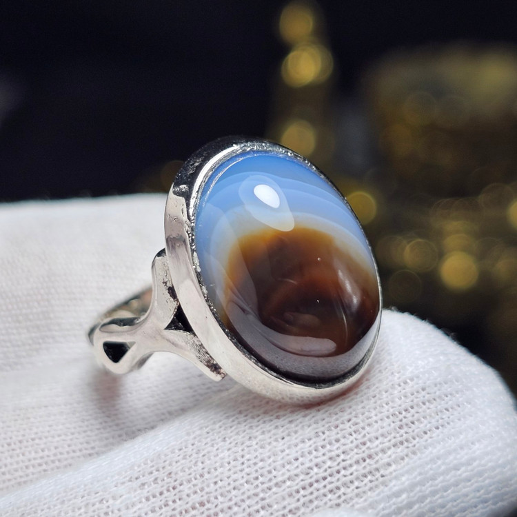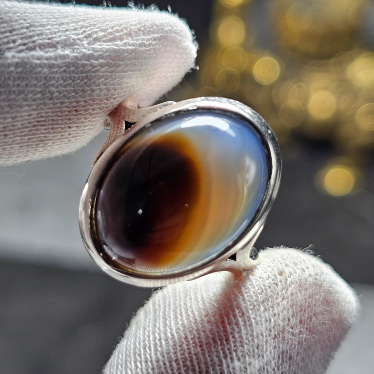 انگشتر نقره روس با سنگ عقیق معدنی کد 37015