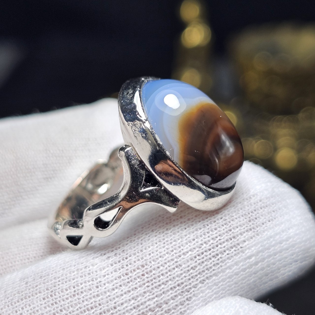 انگشتر نقره روس با سنگ عقیق معدنی کد 37015