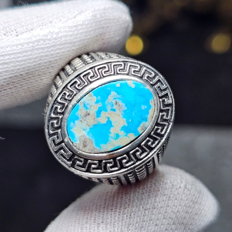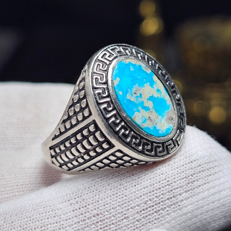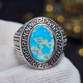 انگشتر نقره روس با سنگ طبیعی فیروزه معدنی نیشابور کد 37018