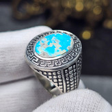 انگشتر نقره روس با سنگ طبیعی فیروزه معدنی نیشابور
